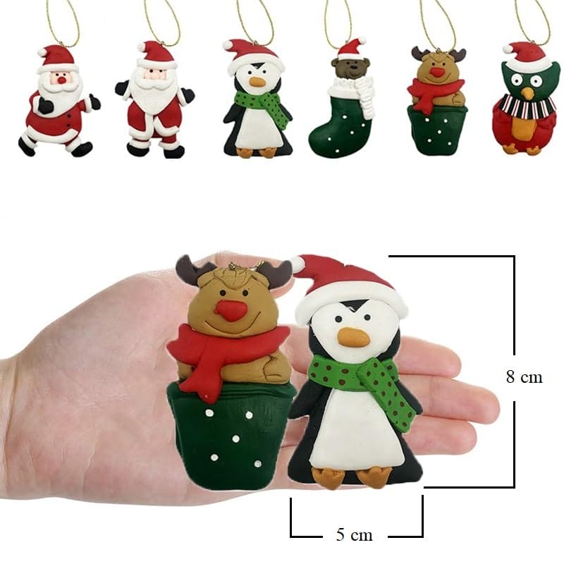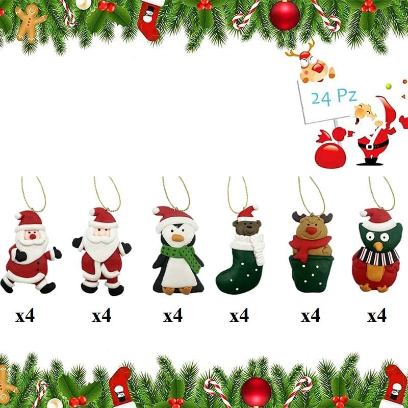 24 Pendenti Natalizi Ciondoli per Albero di Natale - 4 Set da 6 Miniature alte 8 cm in Gomma e PVC - Addobbi per Natale