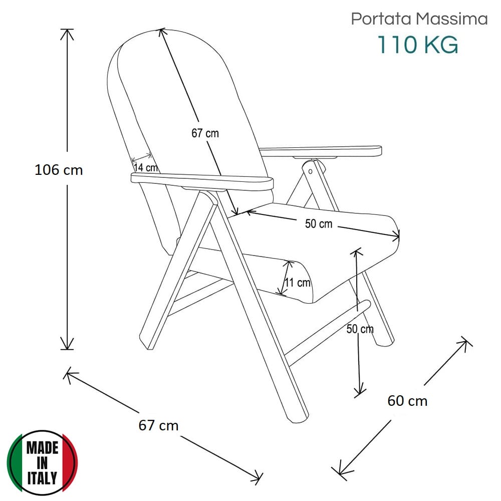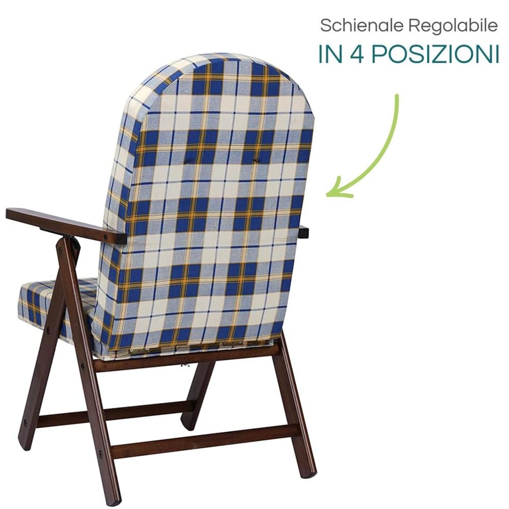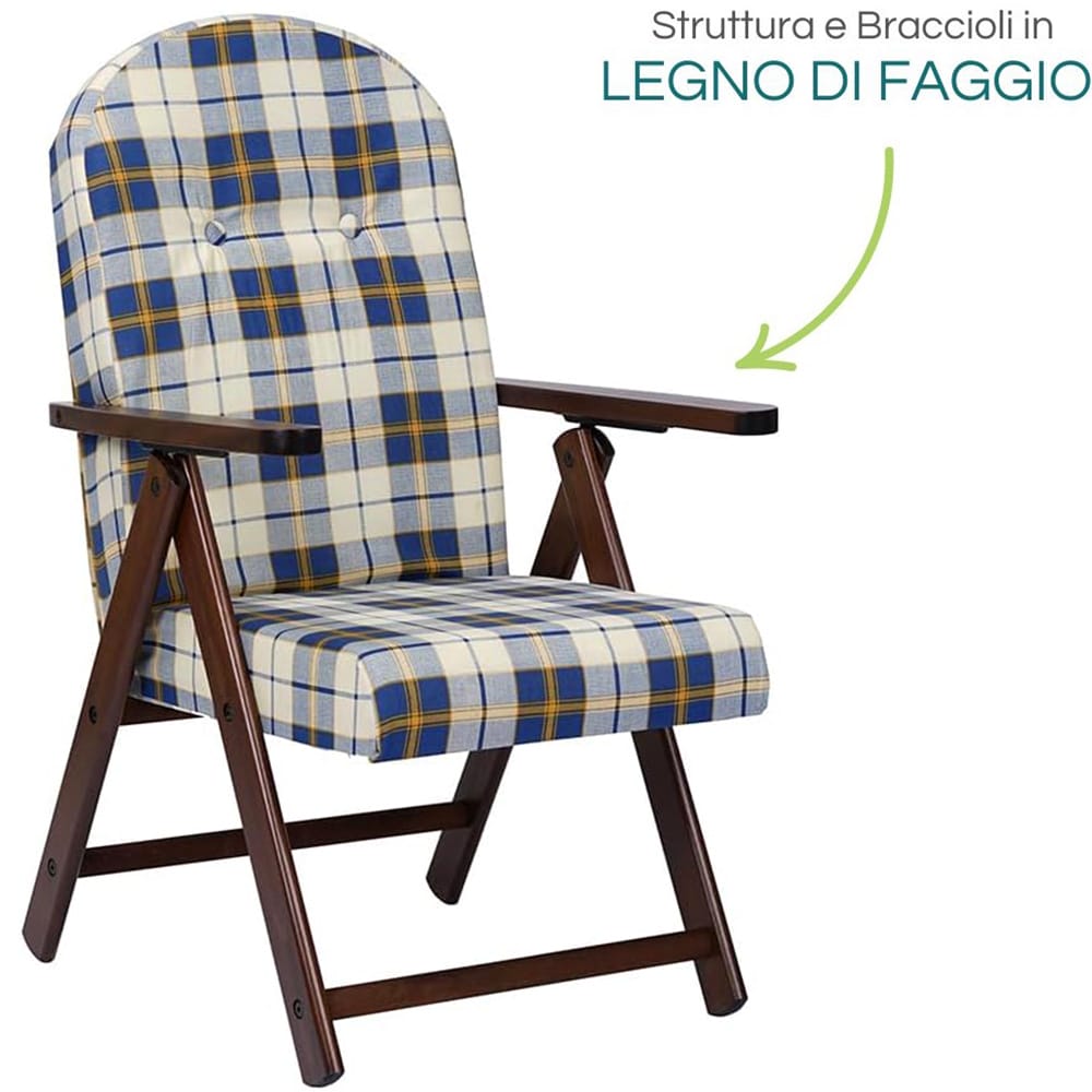 Poltrona Campania con schienale reclinabile in 4 posizioni, struttura in legno di faggio con braccioli - Misura 60x67x106 cm - Colore Bordeaux Scozzese