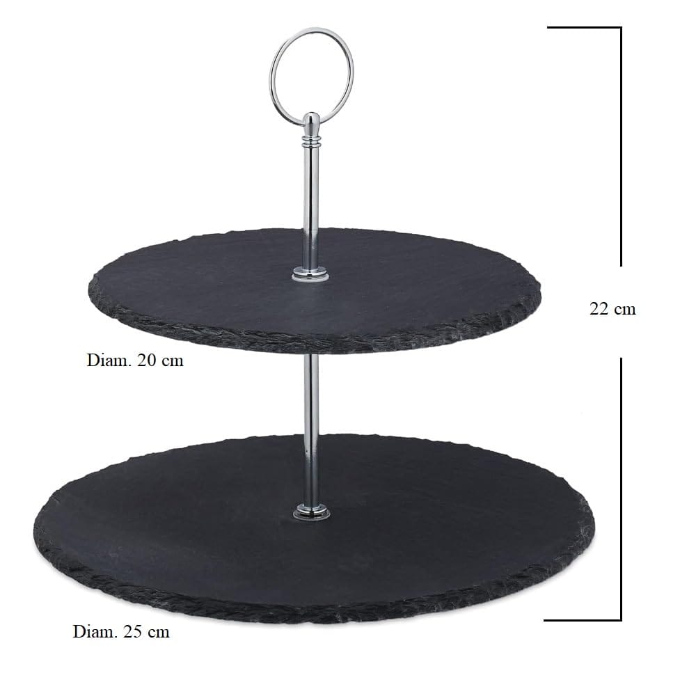 Alzata in ardesia con 2 ripiani rotondi, misura 25x22 cm - Struttura in metallo con gancio e 4 piedini antiscivolo