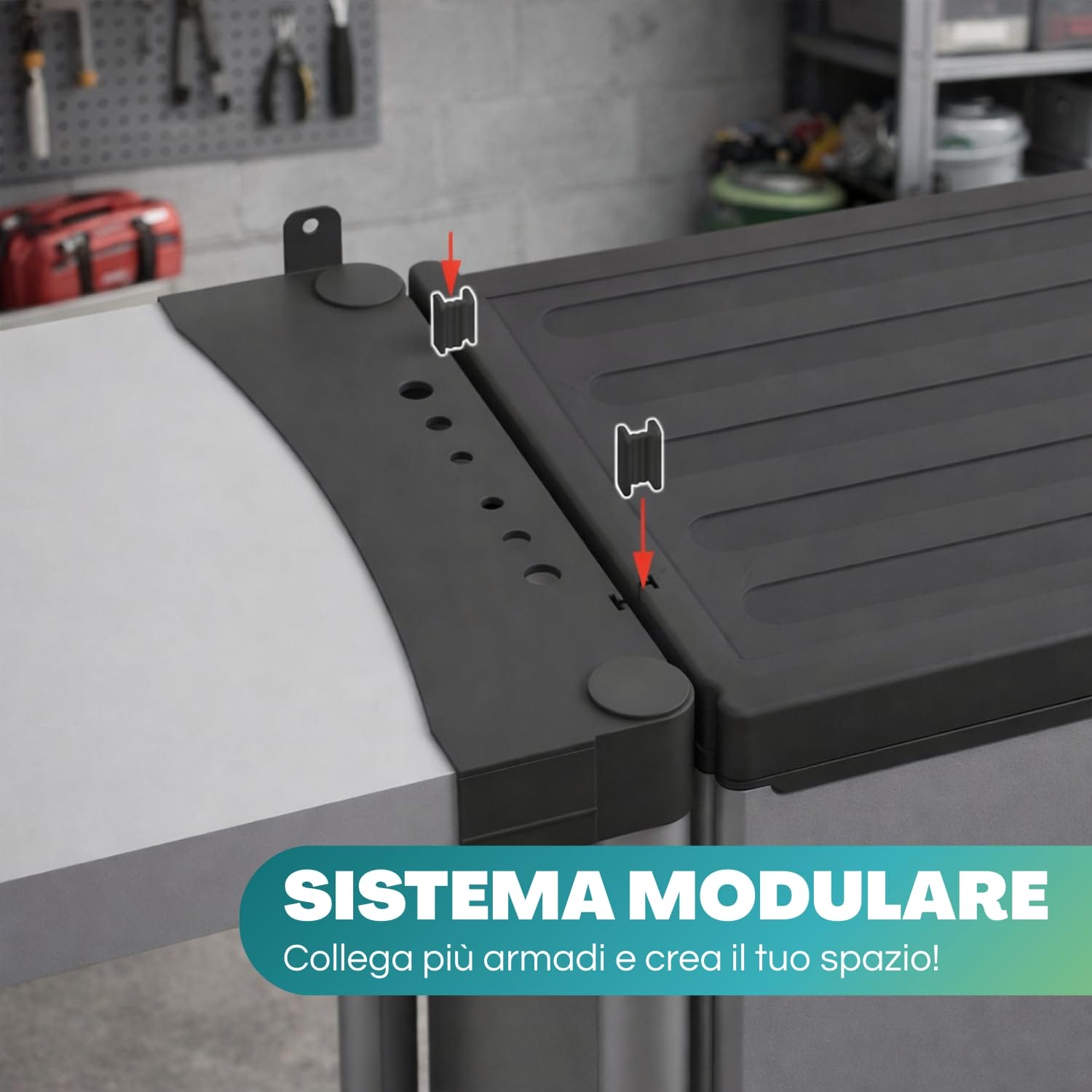 Armadio alto a 1 anta in Resina di colore grigio - Misura 34x38,5x165 cm - Mobile multiuso con 4 ripiani regolabili e piedini antiscivolo