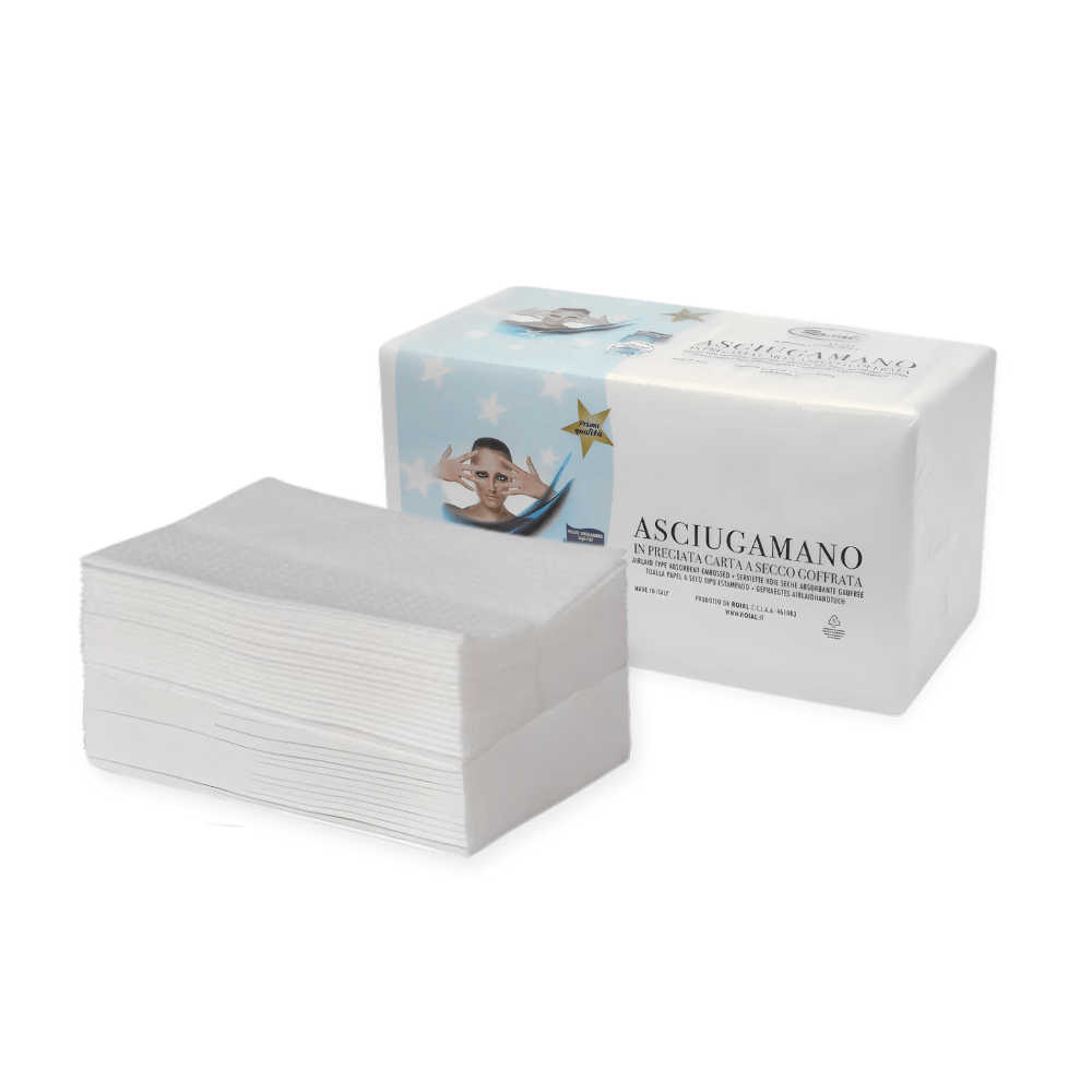 540 Asciugamani Monouso da 35x67 cm in Carta a Secco Goffrata Ro.ial - Asciugamani da barbiere e parrucchiere - 9 confezioni da 60 Asciugamani
