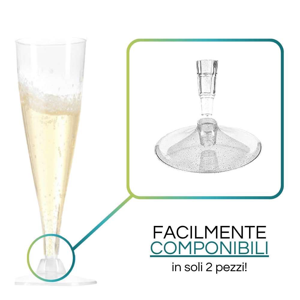 Calici Flute in Plastica da 140ml con gambo rimovibile