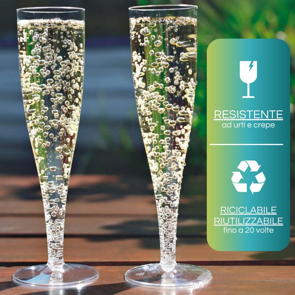 400 Calici Flute in plastica trasparente da 140 ml con gambo rimovibile - 20 Confezioni da 20 pezzi