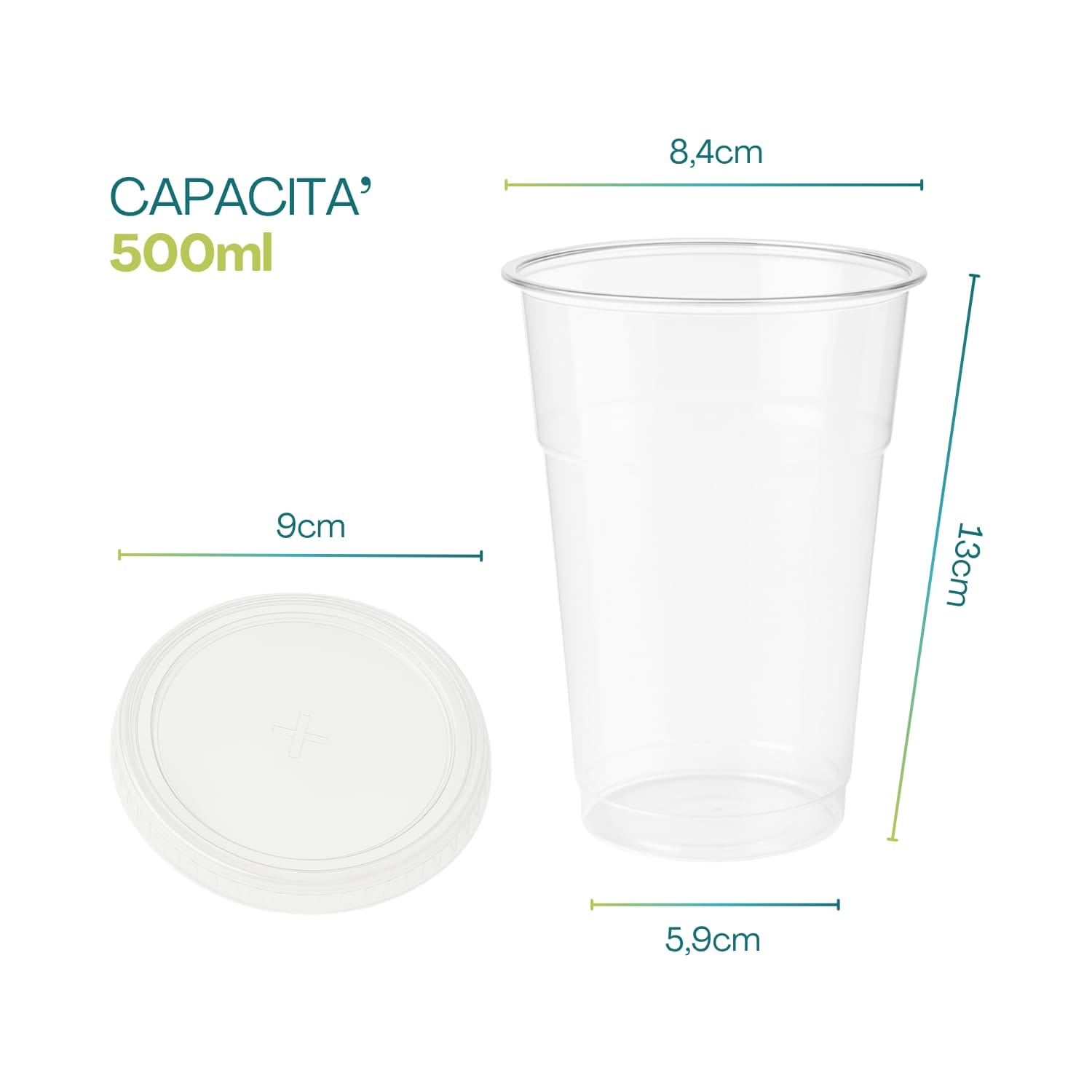 300 Bicchieri in plastica dura tipo Kristal da 500 ml con 300 Coperchi - Bicchieri realizzati con plastica di altissima qualità