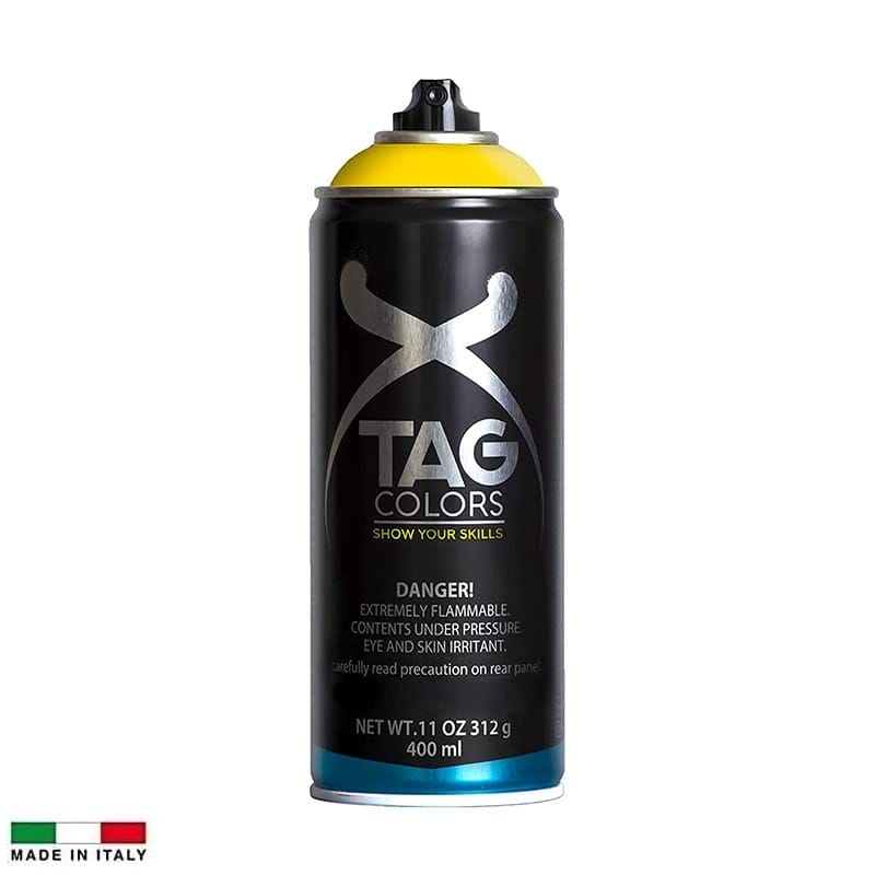 Bombolette Spray graffiti Vernice Acrilica 400ml Varie Tonalità di Giallo + 5 testine per tratti precisi e spessi finitura opaca coprente per street artists murales - Colore: SAIYAN YELLOW