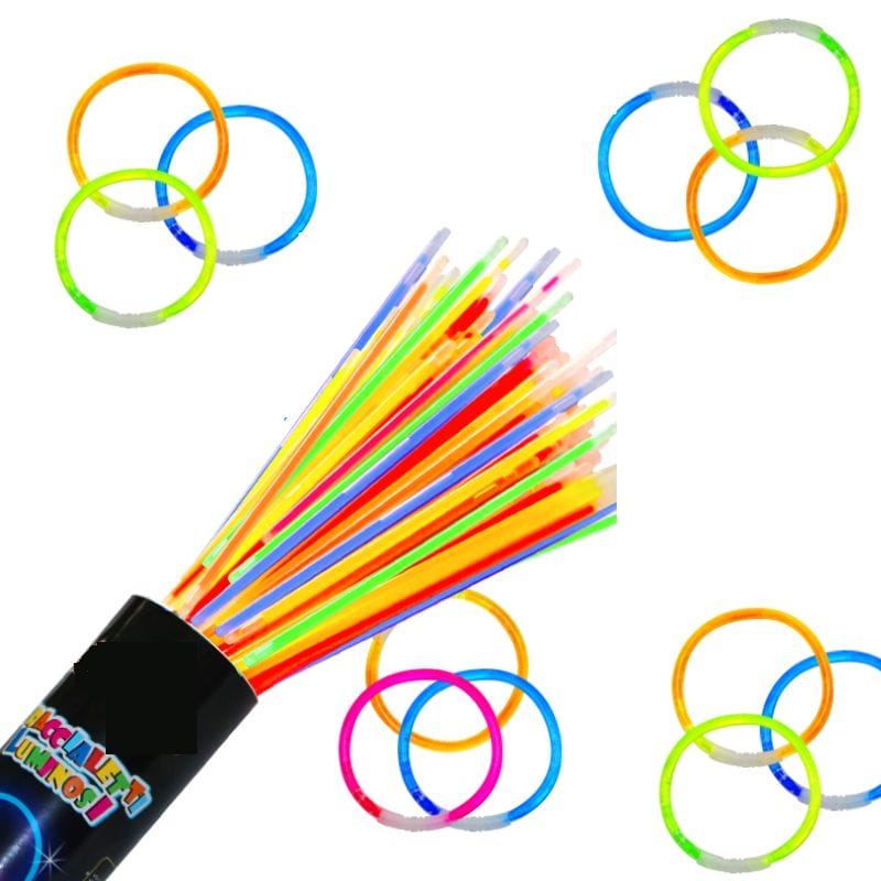 100 Braccialetti Luminosi Kit Bracciali Fluo da Discoteca con connettori in plastica DJ - Starlight Per feste ed eventi