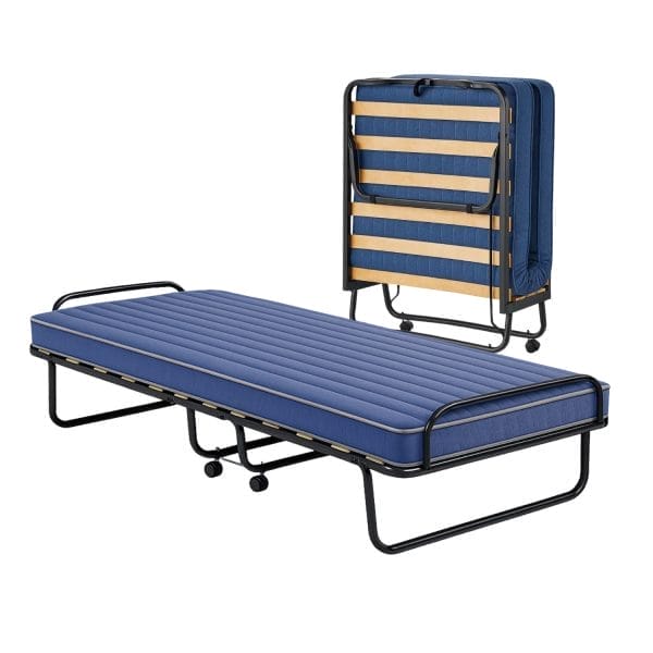 Brandina pieghevole con materasso singolo alto 10 cm - Misura 80x200x39 cm - Letto con struttura tubolare, 4 ruote girevoli e 15 doghe flessibili in legno - Inclusa copertura salvapolvere