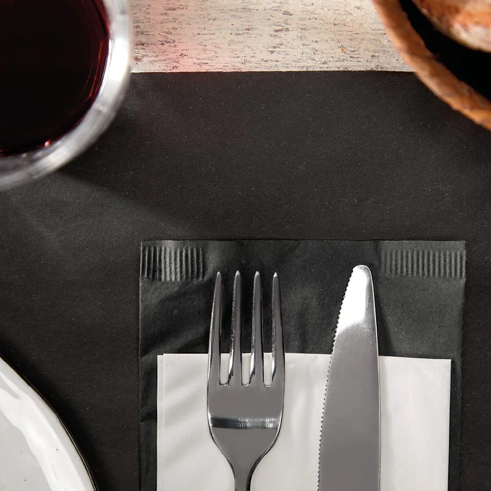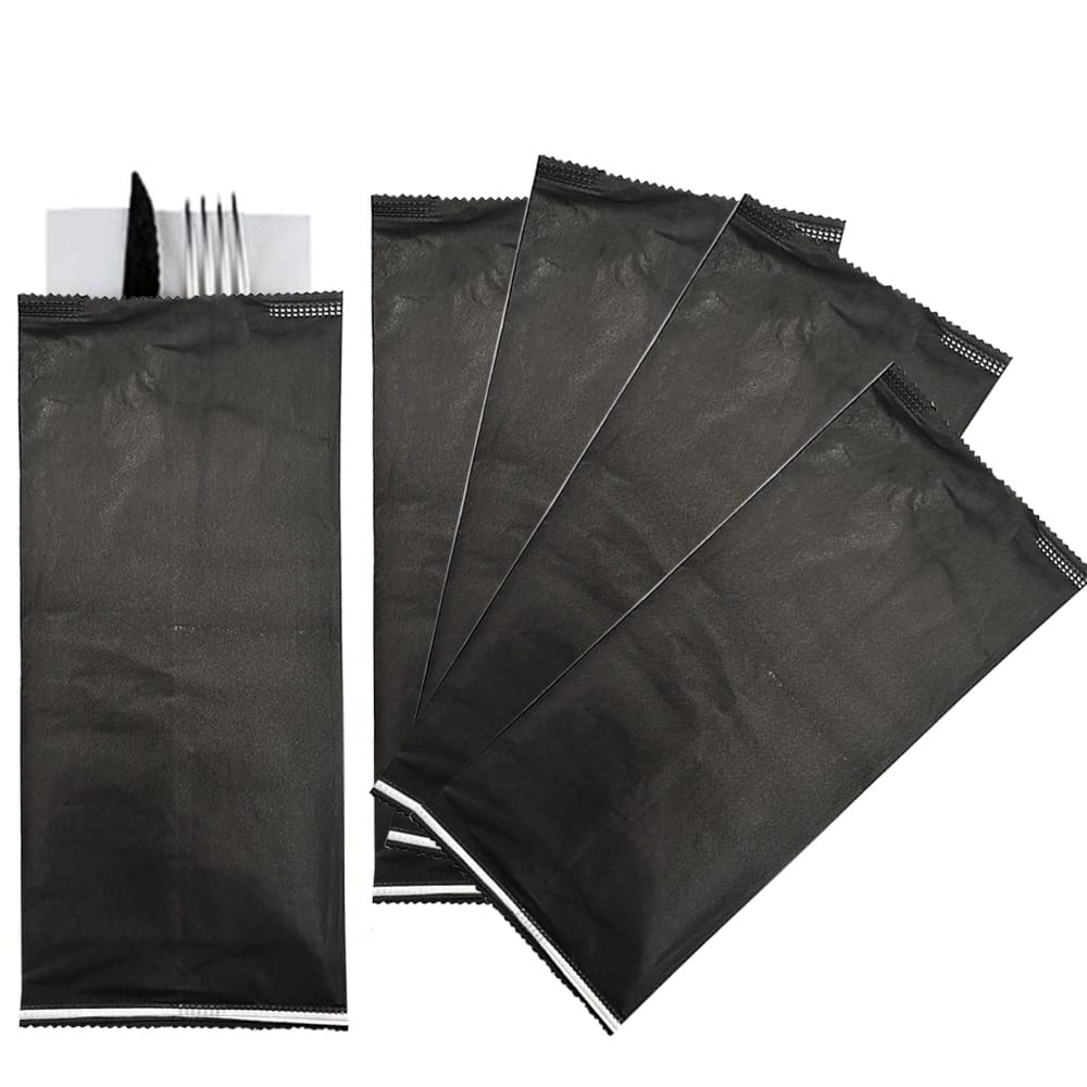 1000 Buste Portaposate in Carta da 11x25 cm con Tovagliolo Doppio Velo da 38x38 cm - Praticità e Igiene per Ristoranti e Catering - Nere