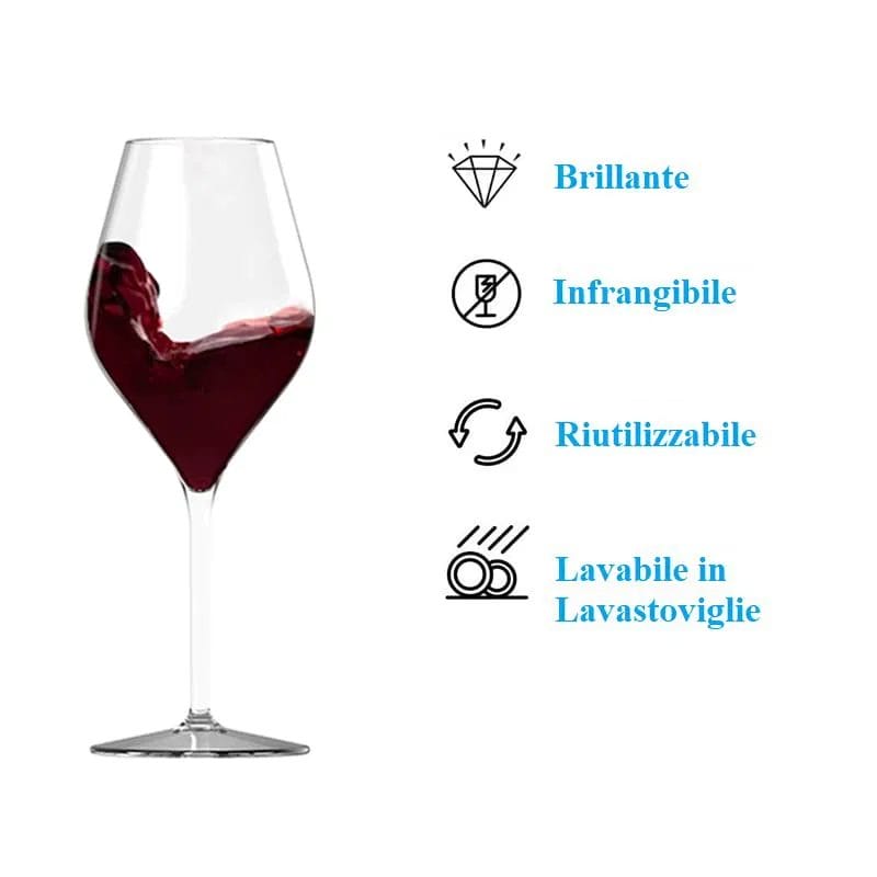 - ALTA TRASPARENZA - i bicchieri da vino si presentano simili ai bicchieri di vetro, con una perfetta trasparenza, lisci al tatto e senza nessuna imperfezione. Eccelleti prodotti di design, perfetti per gli eventi outdoor e le location più esclusive, che desiderano uno stile ricercato in grado di garantire la massima sicurezza.