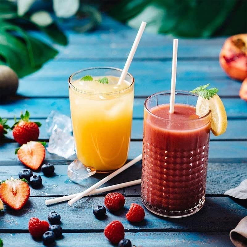 Cannucce diritte imbustate singolarmente in confezioni da 500 pezzi cadauna 100% biodegradabili e biocompostabili. Cannucce di colore Bianco con misura 21 cm di lunghezza e diametro di 6 mm, ideali per la tua attività commerciale per bevande sia fredde che calde.