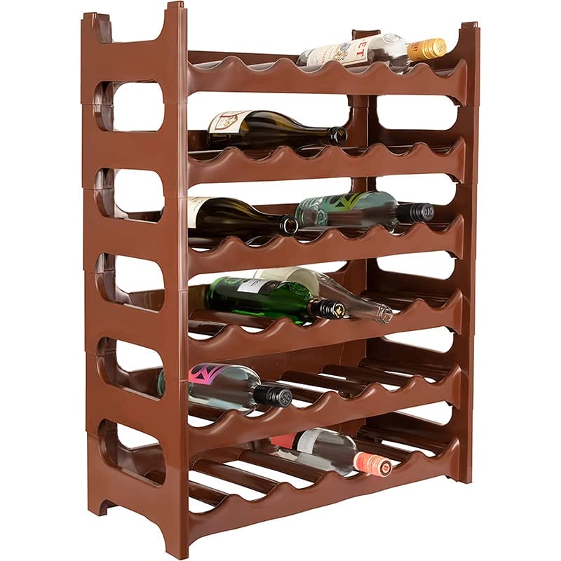 Cantinetta da 36 Bottiglie - In Plastica Componibile con misura 60x24x84 cm - Scaffale impilabile per vino, acqua, champagne - 6 Ripiani da 6 slot - MARRONE