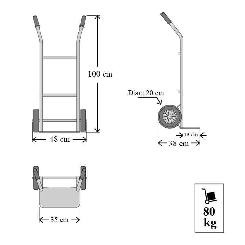 Carrello portapacchi 2 ruote in Acciaio con portata Max 80 Kg