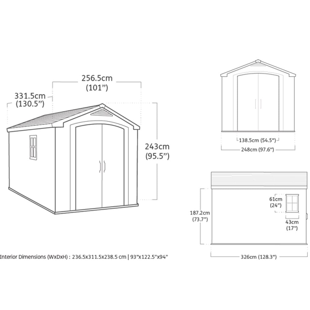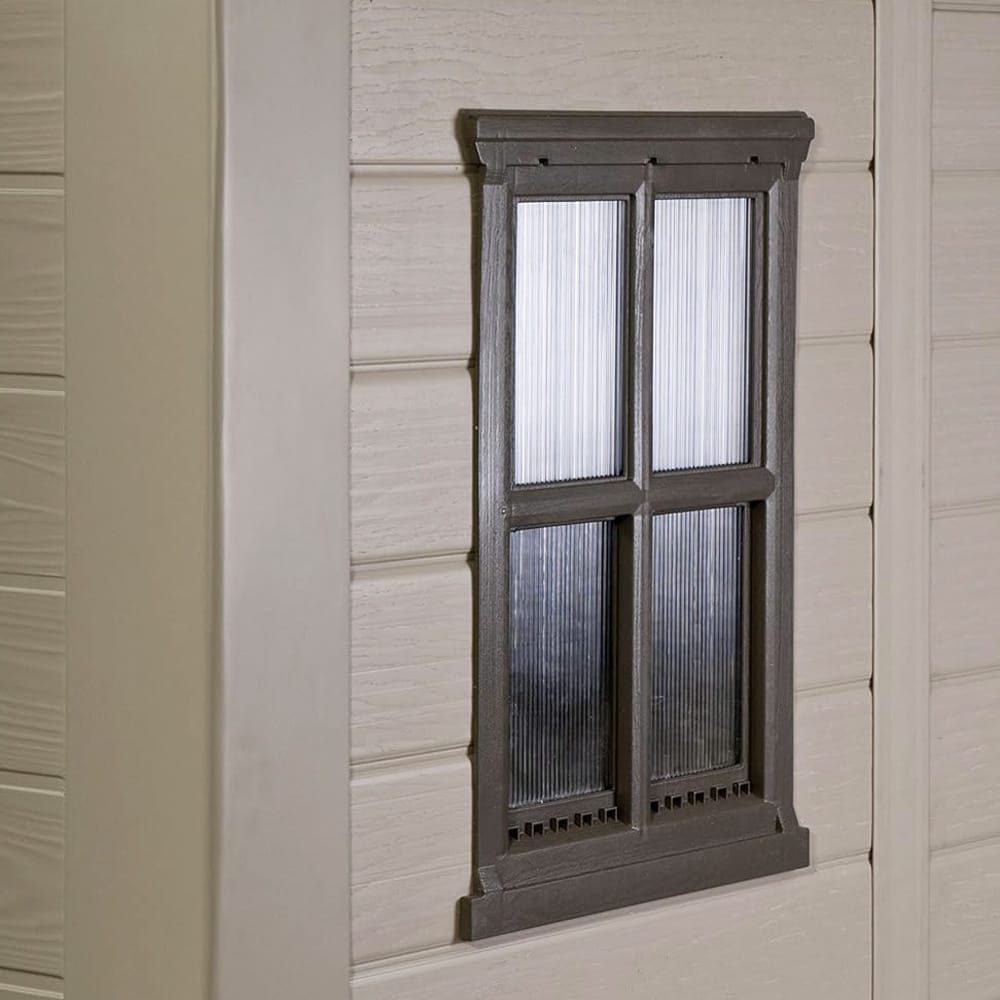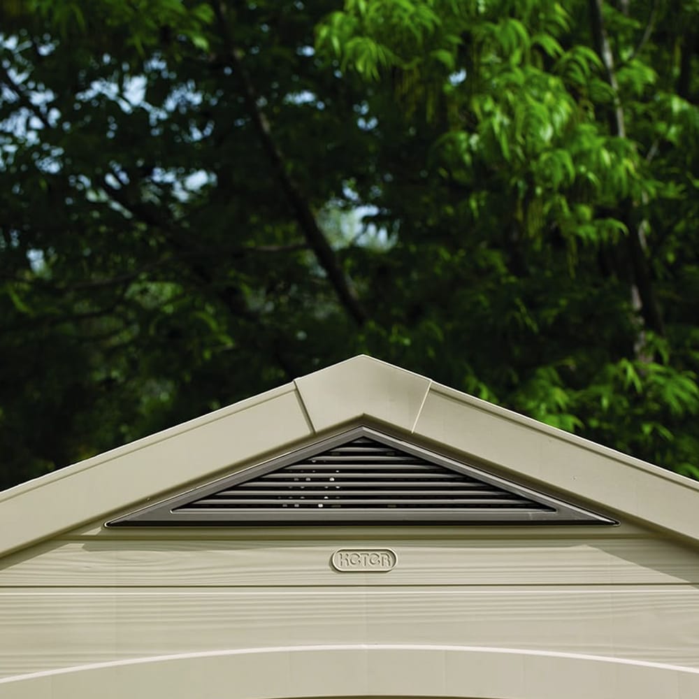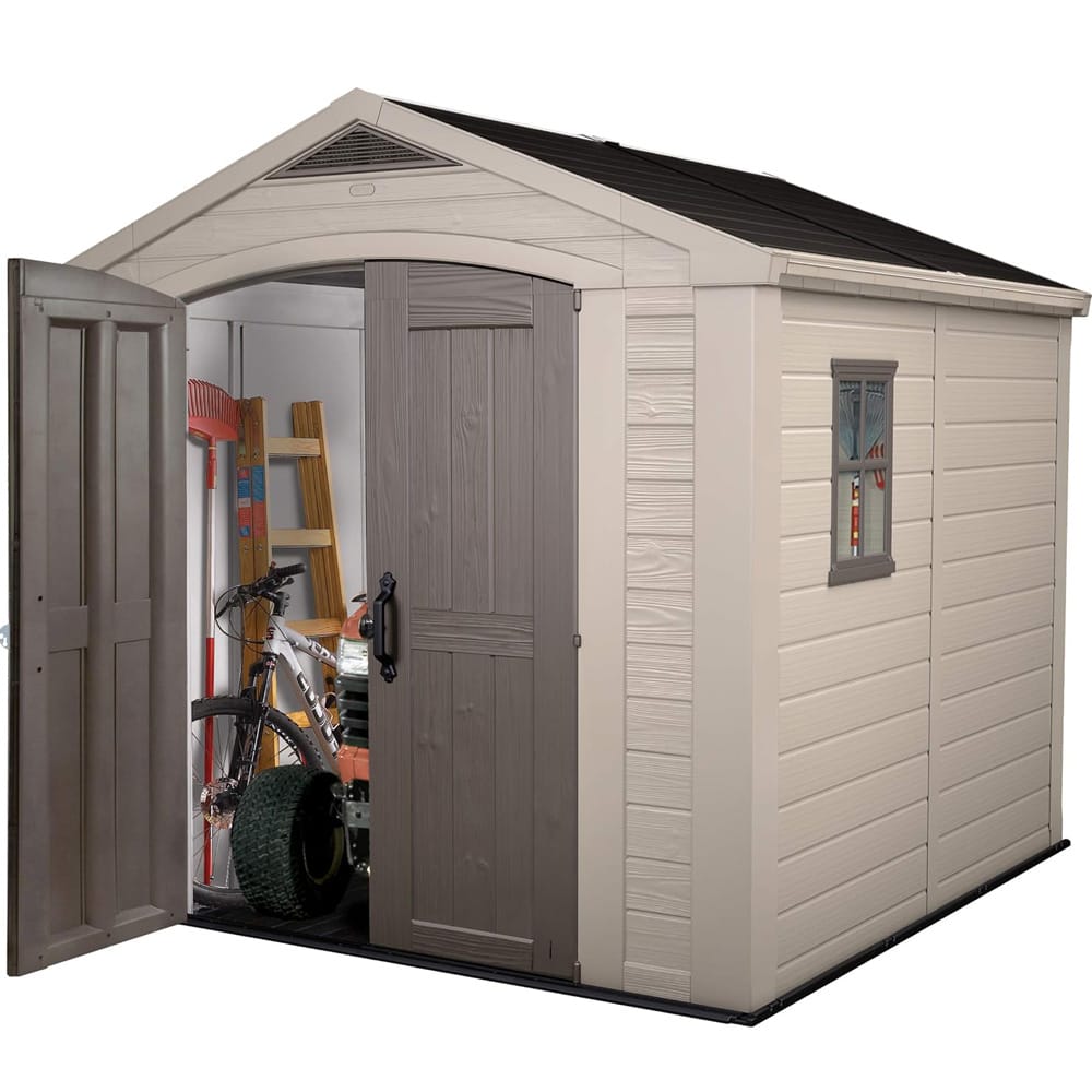 Keter Casetta da Giardino Factor 8x11, misura 256,4x331,5x245 cm (7,37 m²), in Resina effetto legno di colore Beige