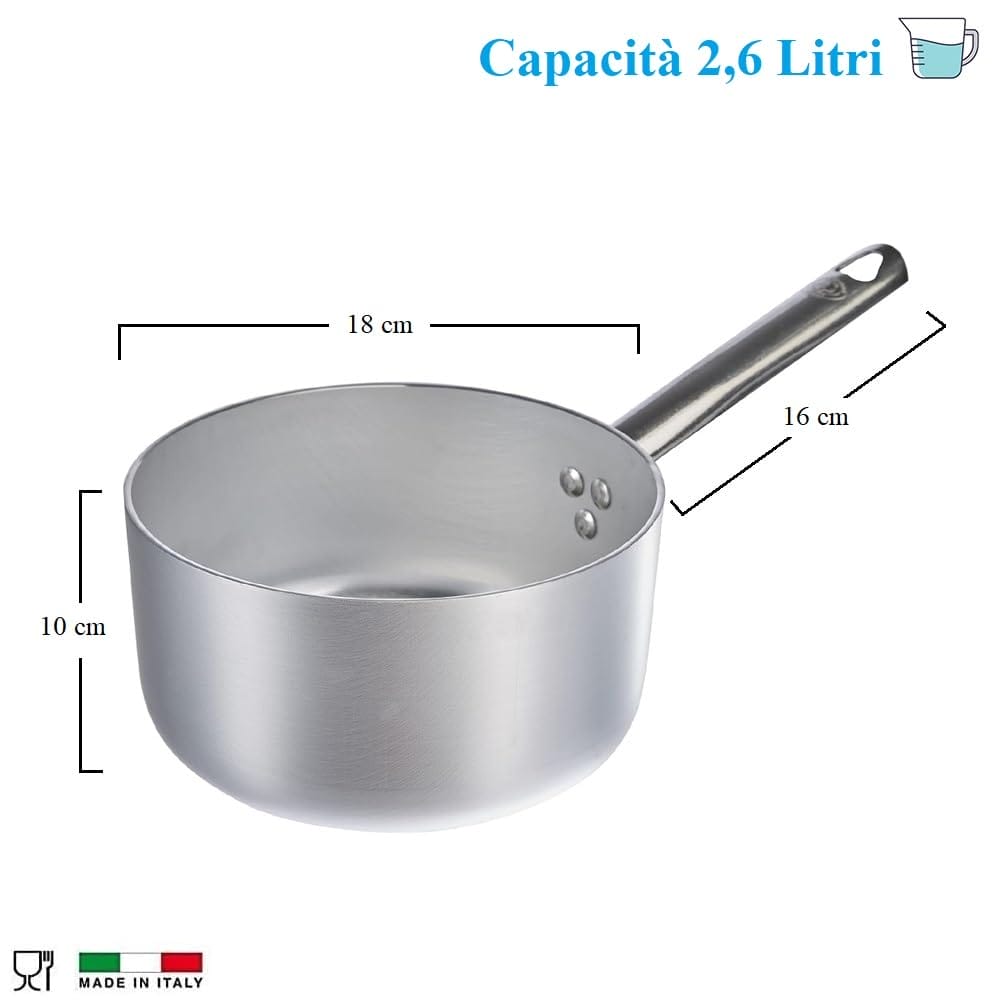 Casseruola alta in alluminio - Diametro 18 cm ed Altezza 10 cm - Pentola professionale antiaderente con manico in acciaio inox