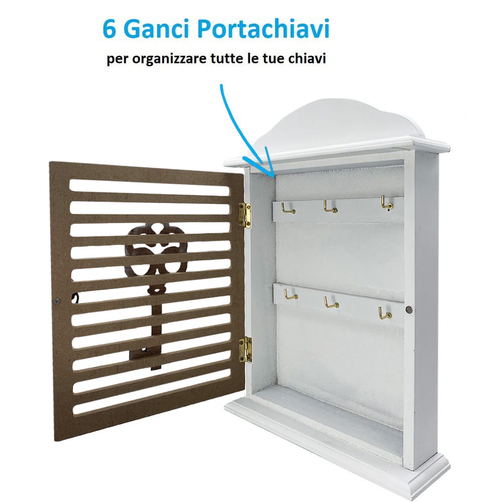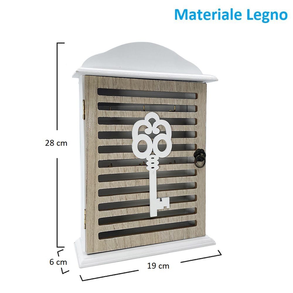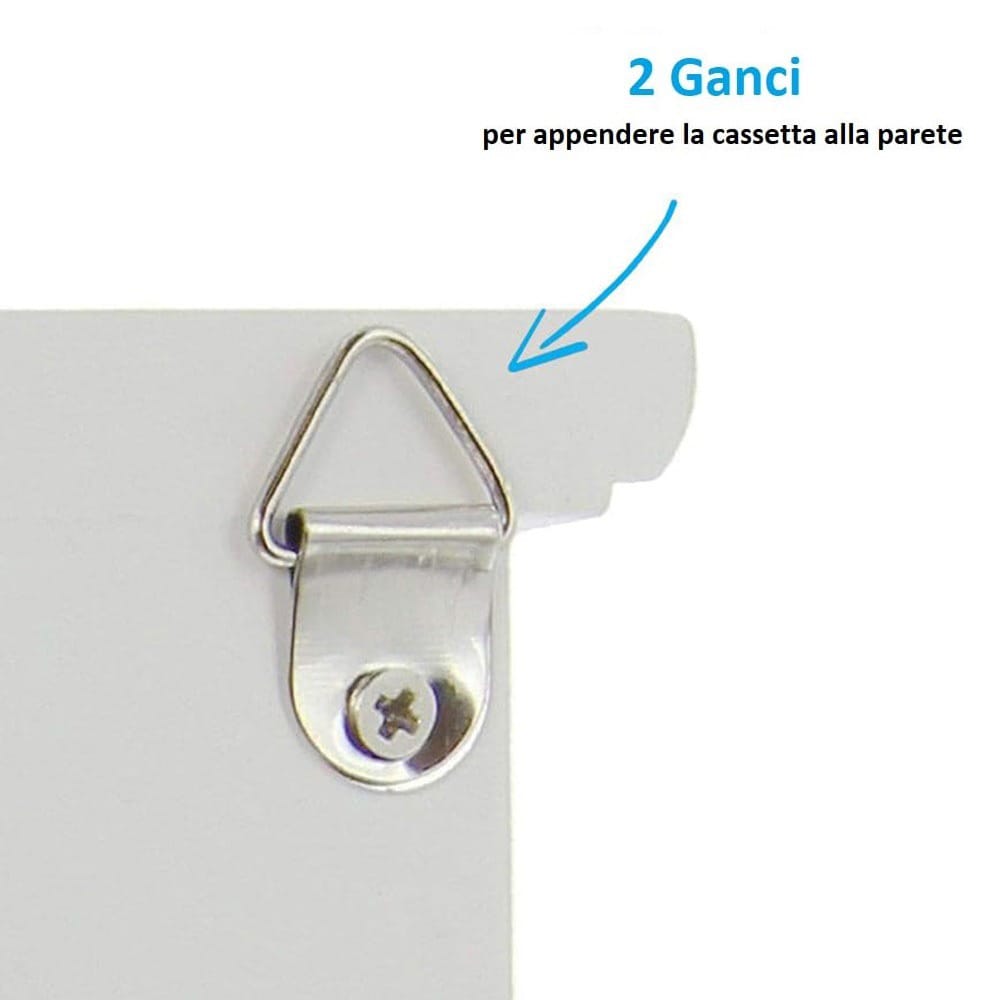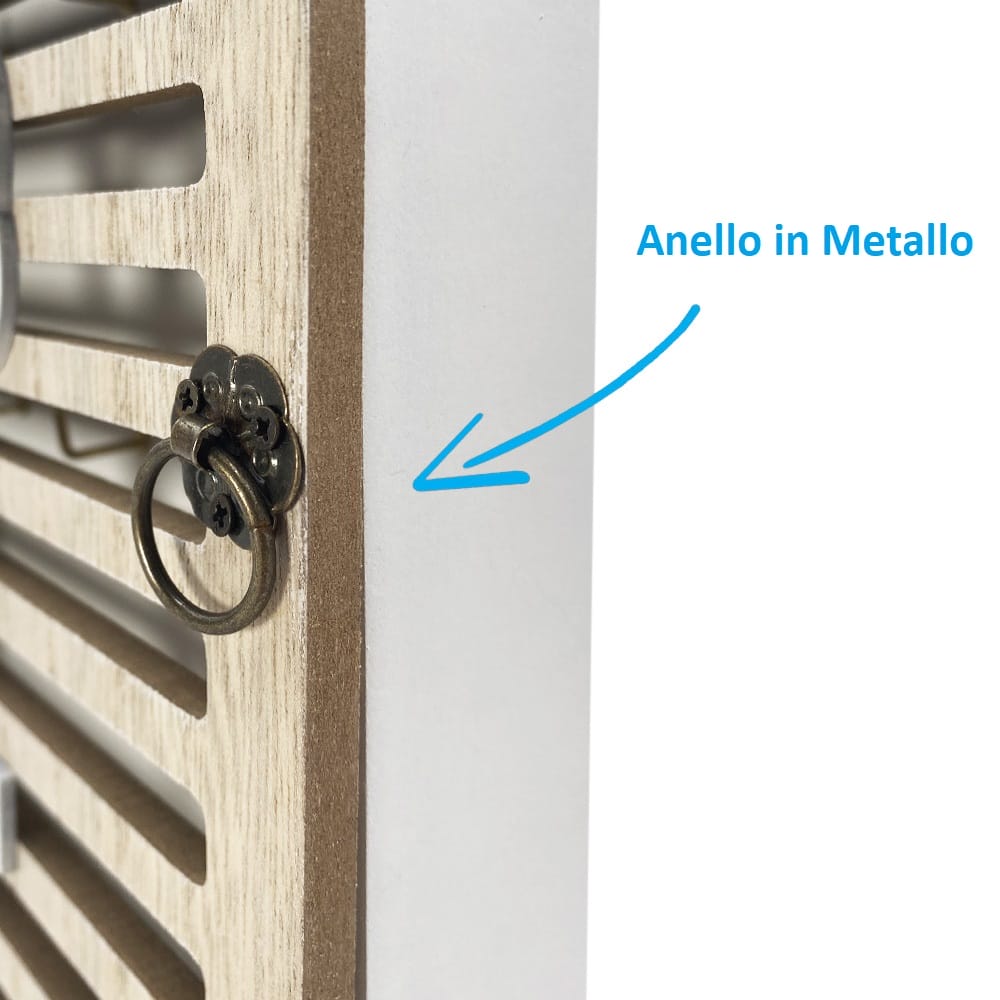 DA PARETE - sulla parte posteriore della cassetta sono disposti 2 ganci per appendere comodamente il portachiavi a qualsiasi parete desideri. Inoltre la scatola presenta un gancio in metallo per un'apertura e chiusura facilitata.