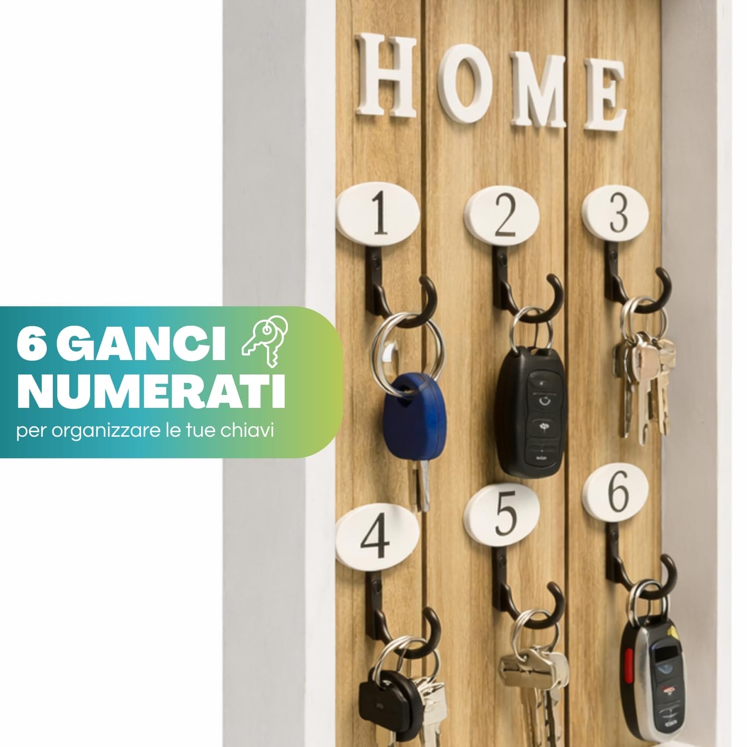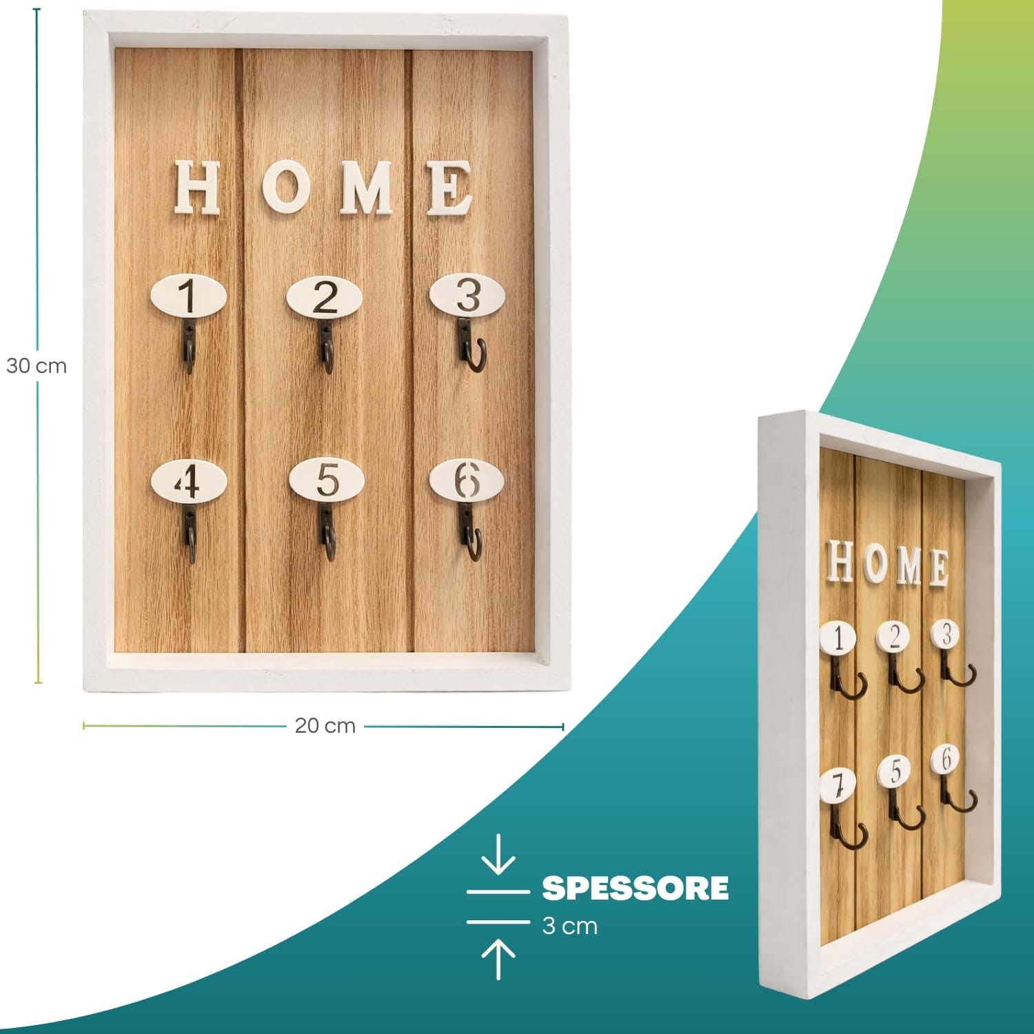 GANCI - la scatola presenta 6 ganci numerati rendendola adatta per identificare le camere di un piccolo Hotel, B&B o una pensione. Il prodotto aggiunge un tocco moderno e contemporaneo al design rendendo questa cassetta perfetta per interni sia classici che minimalisti.