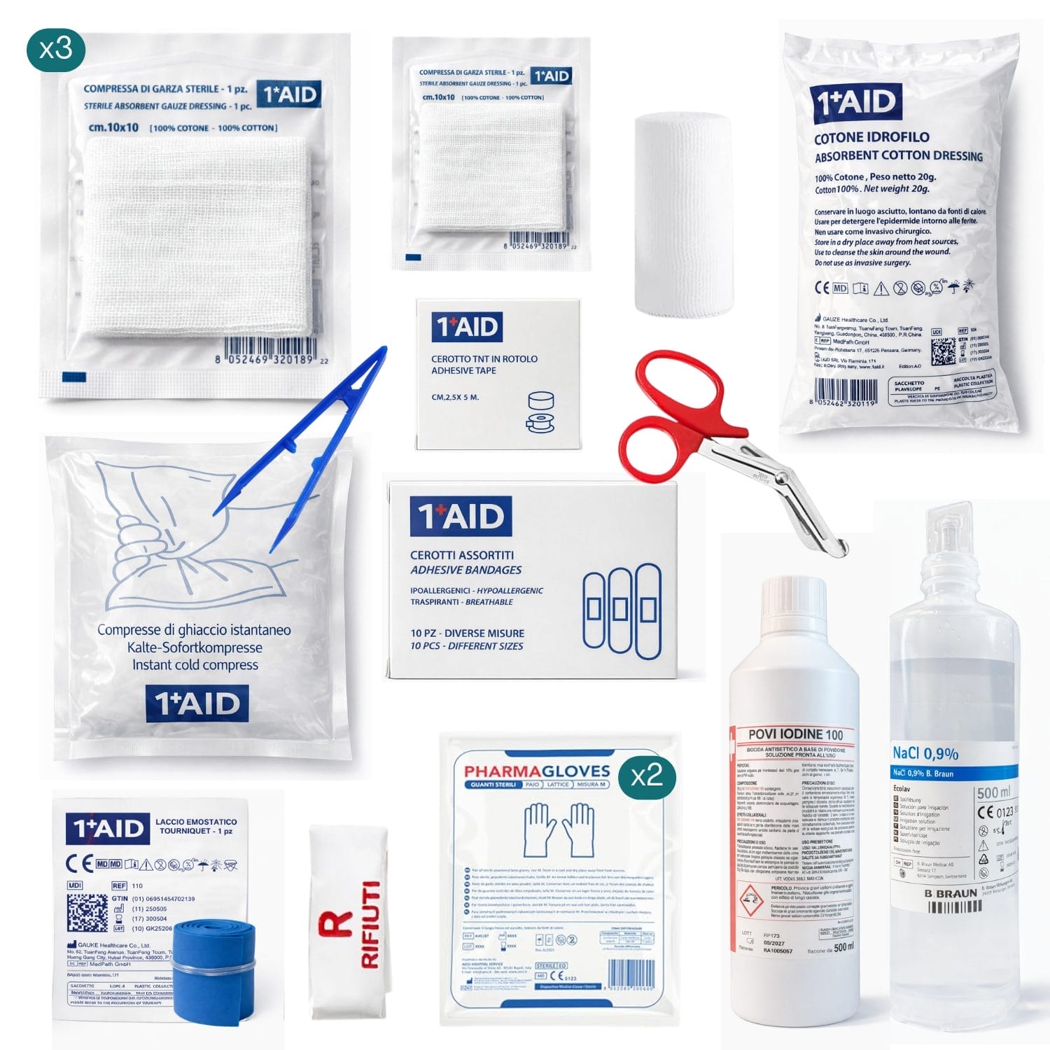 Cassetta medica di pronto soccorso con ALLEGATO 2 per aziende con meno di 3 lavoratori conforme al DM 388/2003 - Misura 25x19x9 cm