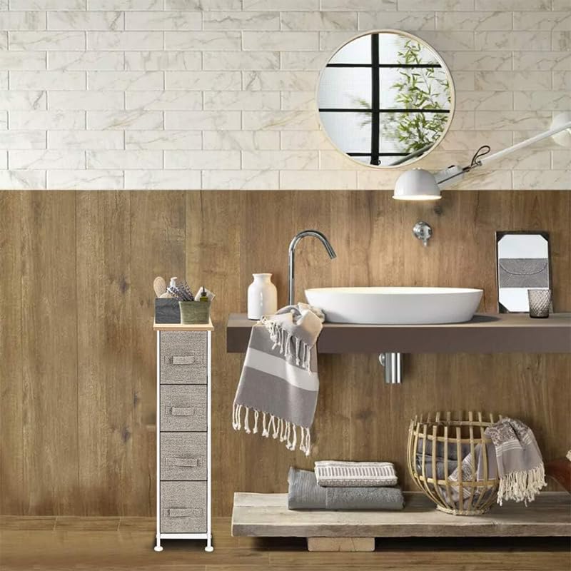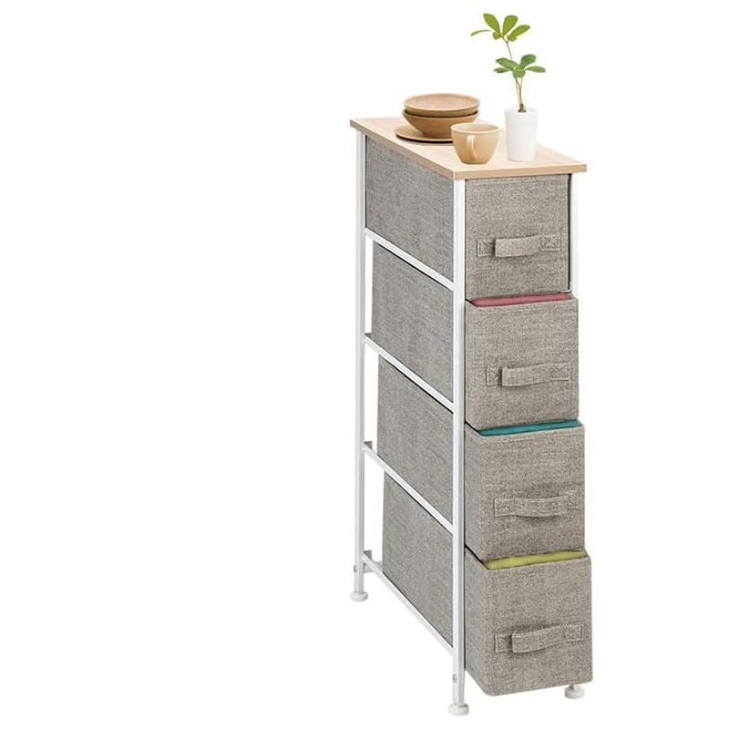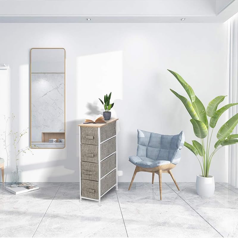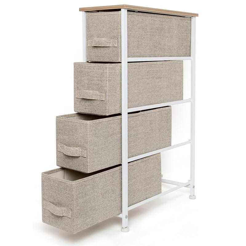 Cassettiera a 4 cassetti in tessuto 20x48x75,5 cm - Struttura in metallo e base superiore in Legno - Comò Mobile Organizer Portaoggetti per Camera da Letto, Bagno, Cameretta