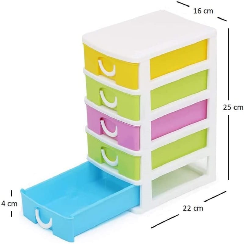 Cassettiera in Plastica a Torre con 5 cassetti Colorati mis. 16x22x25cm - 5 cassetti salvaspazio con maniglia Organizer da ufficio, bagno o camera da letto