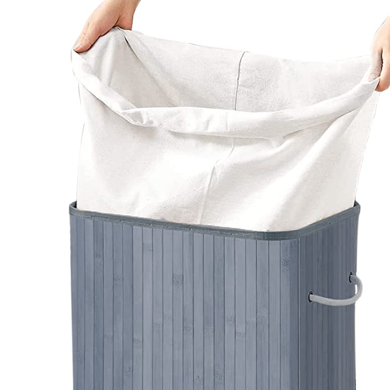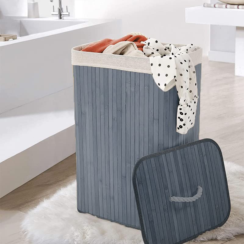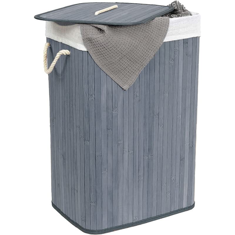 Cesto Portabiancheria sporca con mis. 40x30x60 cm - Cesto in Bambù con 1 scomparto e coperchio - Capacità 72 Litri - Grigio