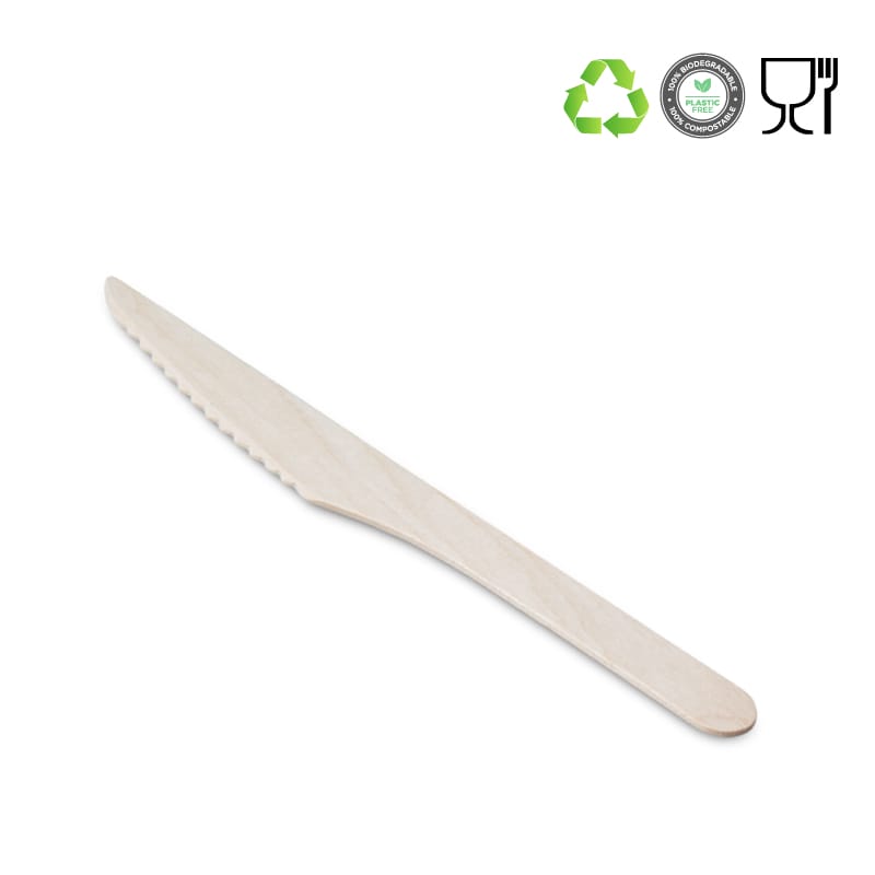 I Coltelli in legno di betulla biodegradabili sono una valida alternativa ai Coltelli classici o in plastica con un design elegante per dare un tocco esclusivo al tuo party.