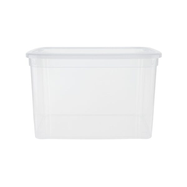 8 Contenitori multiuso con chiusura a scatto, misura 56x38,5x29 cm e capacità 43 litri - Porta biancheria trasparente con coperchio, box salvaspazio impilabile