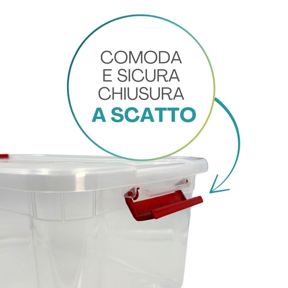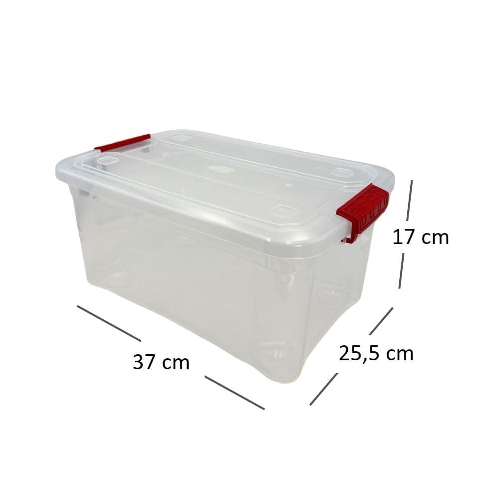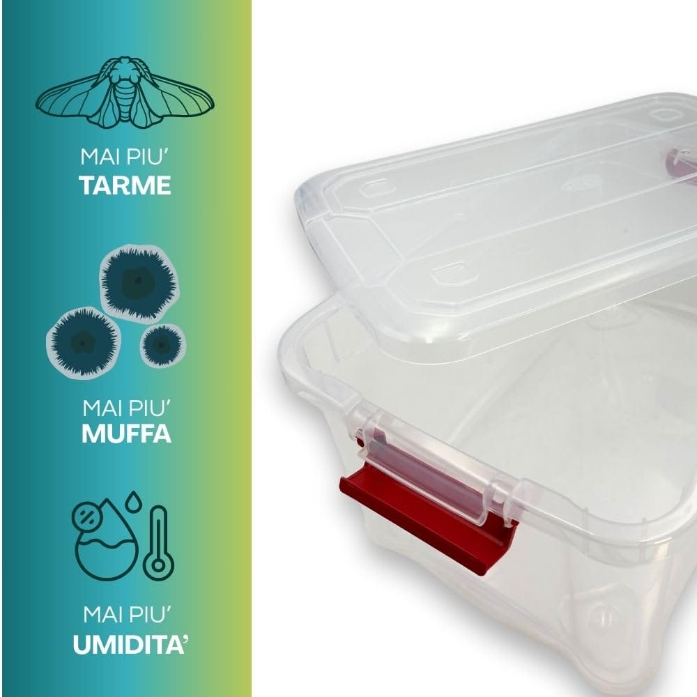 10 Contenitori multiuso in plastica trasparente da 10 Litri con chiusura a scatto - Misura 37x25,5x17 cm - Porta biancheria salvaspazio impilabile con coperchio