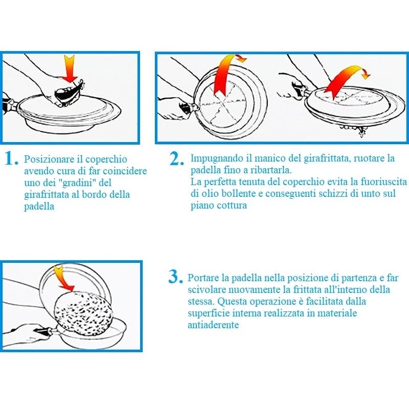 Il nostro coperchio girafrittata è un innovativo utensile che semplifica la preparazione delle frittate, offrendo praticità, sicurezza e risultati ottimali