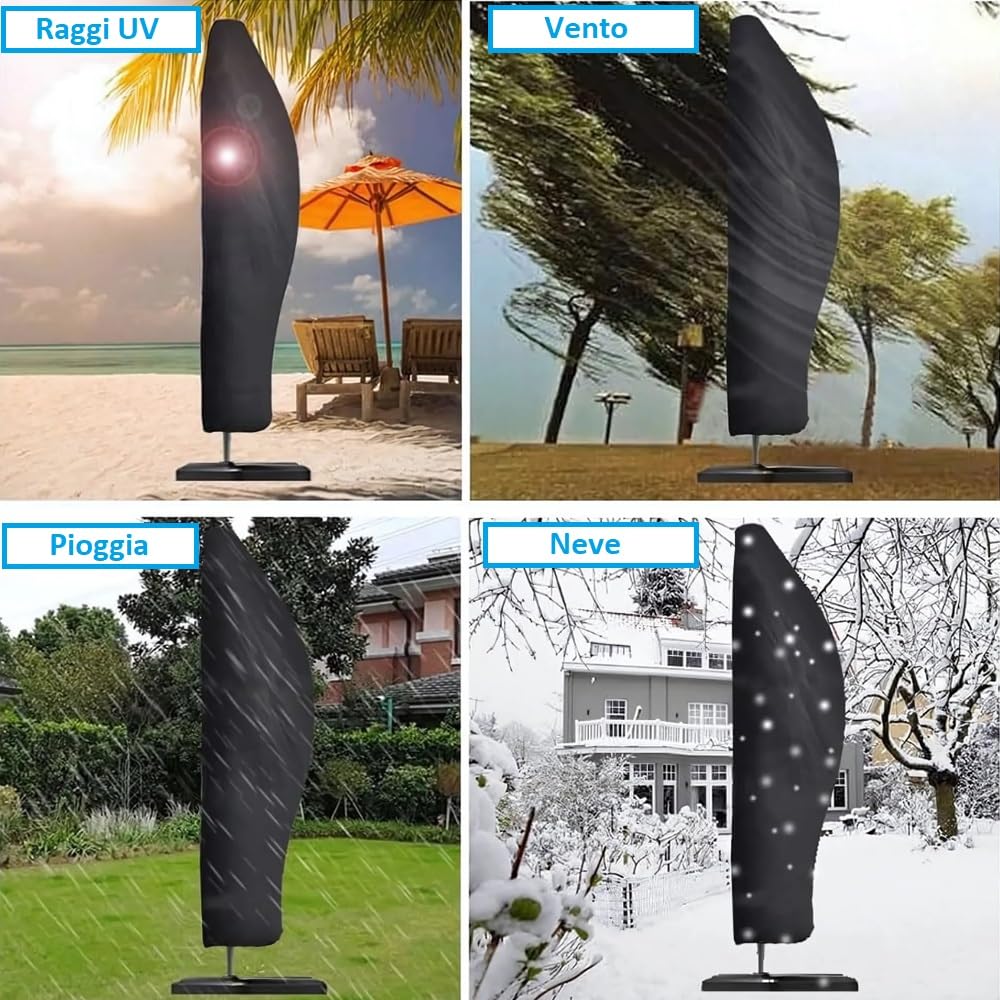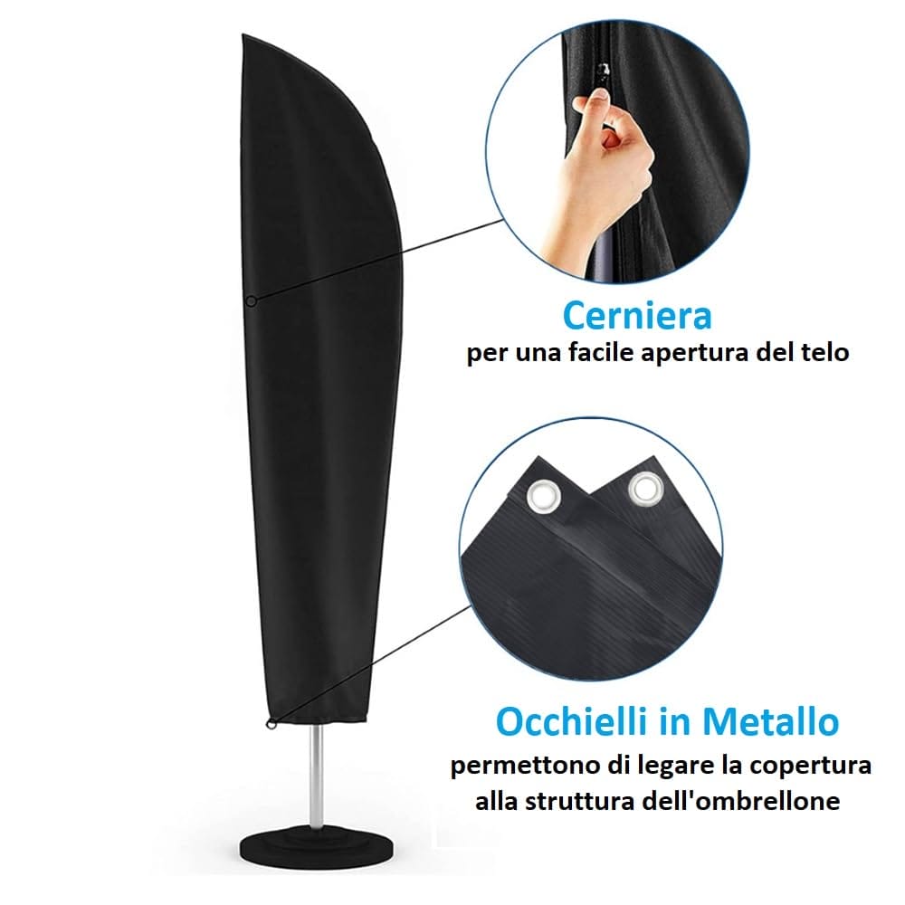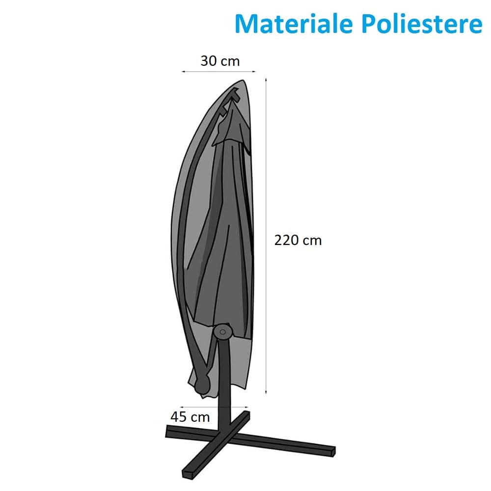Copertura Protettiva per Ombrellone a Braccio - 30/45x220 cm - Telo Impermeabile in Poliestere con Occhielli e Cerniera - Resistente a Polvere, Pioggia e Raggi UV