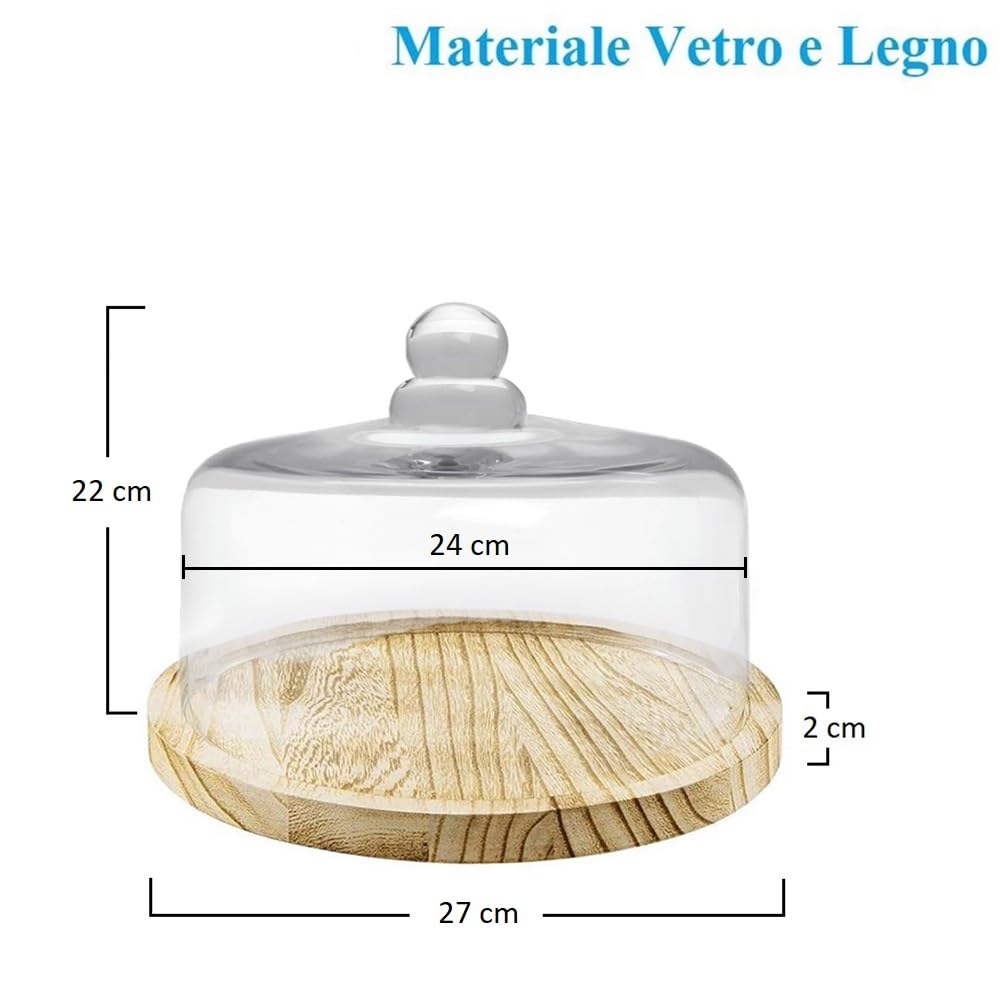 Campana in Vetro Trasparente con Base in Legno - Misura 27x22 cm - Espositore Decorativo per Dolci, Oggetti e Composizioni Floreali