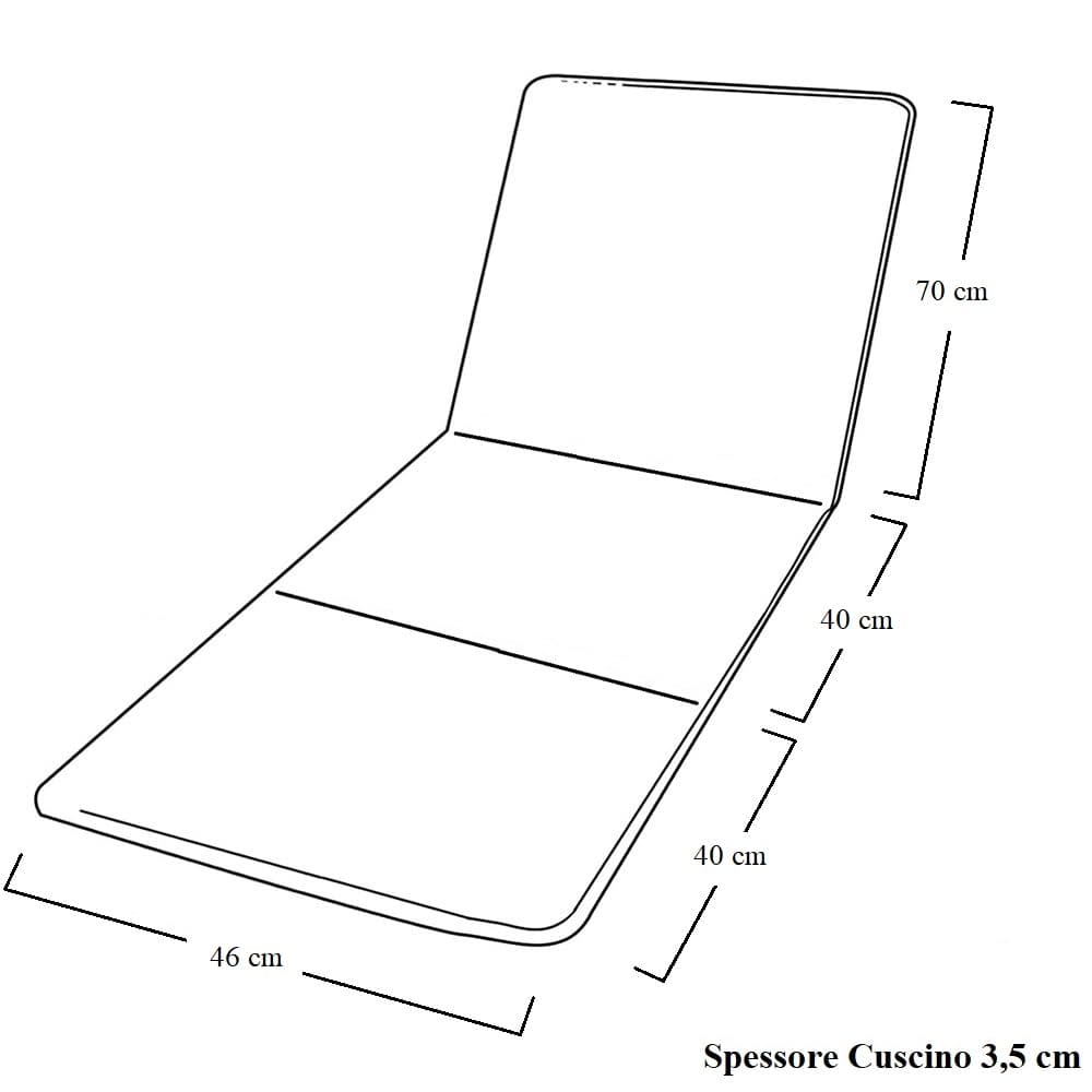 Cuscino per sedia prendisole da giardino - MIS. 46x150 cm e spessore 3,5 cm - Con schienale alto verde e bianco - Sedia con imbottitura morbida sfoderabile con cerniera