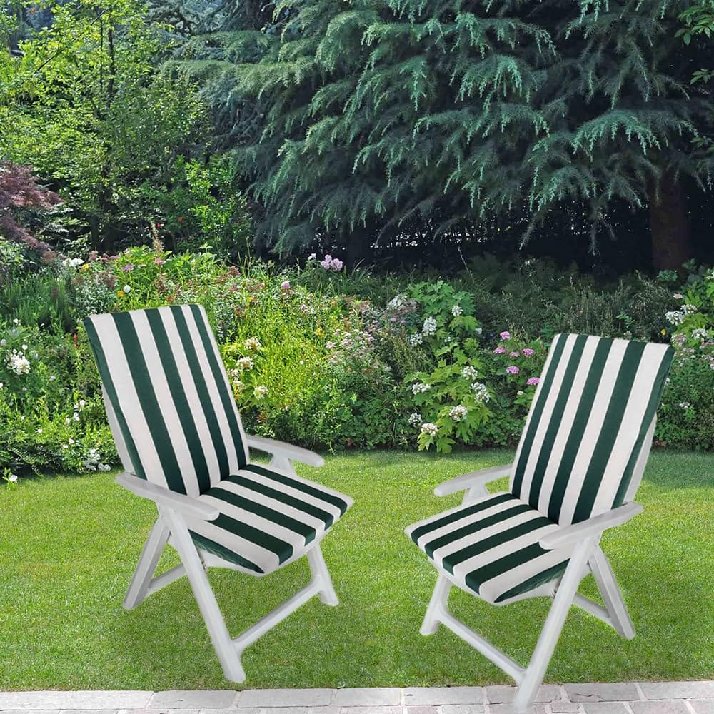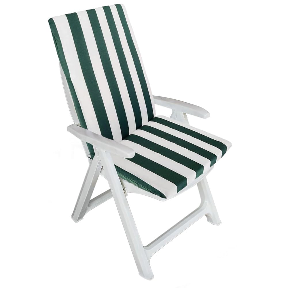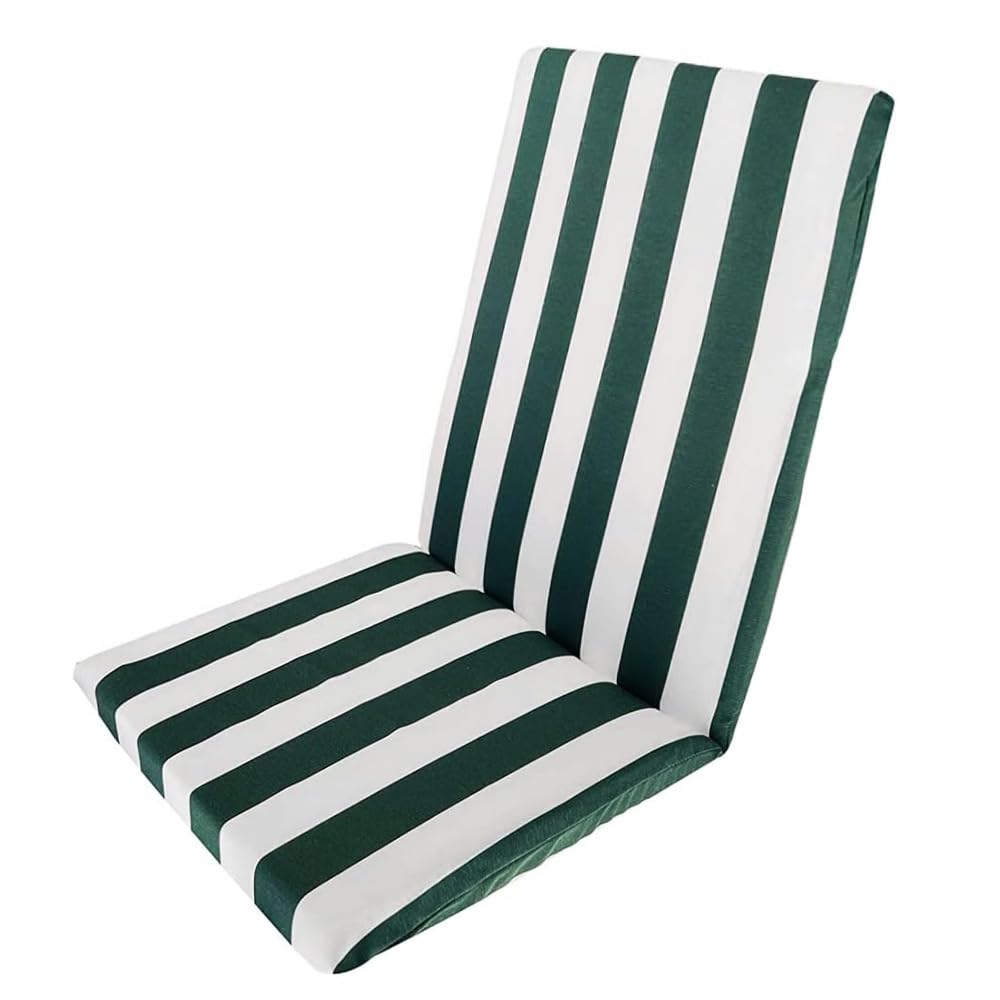 Cuscino per sedia prendisole da giardino - MIS.45x110 cm e spessore 3,5 cm - Con schienale alto verde e bianco - Sedia con imbottitura morbida sfoderabile con cerniera