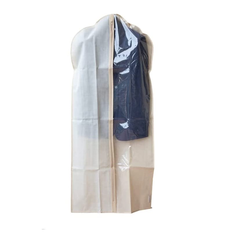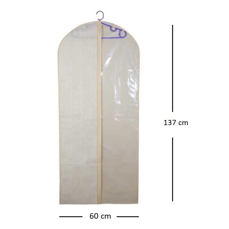 6 Custodie porta abiti in TNT Beige Mis. 137x60 cm - Copriabiti antipolvere con lato Trasparente e Cerniera