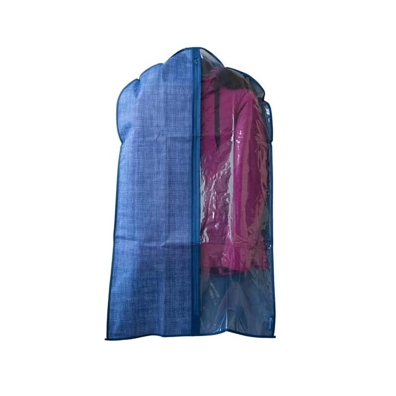 6 Custodie porta abiti in TNT Blu Mis. 100x60 cm - Copriabiti antipolvere con lato Trasparente e Cerniera