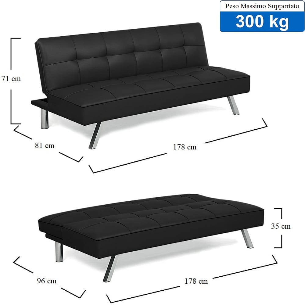 Divano letto in similpelle, misura pari a 178x81x71 cm, con piedini in metallo dal design moderno. Il divano è una soluzione comoda ed elegante per la tua cucina, soggiorno o qualsiasi altro ambiente.