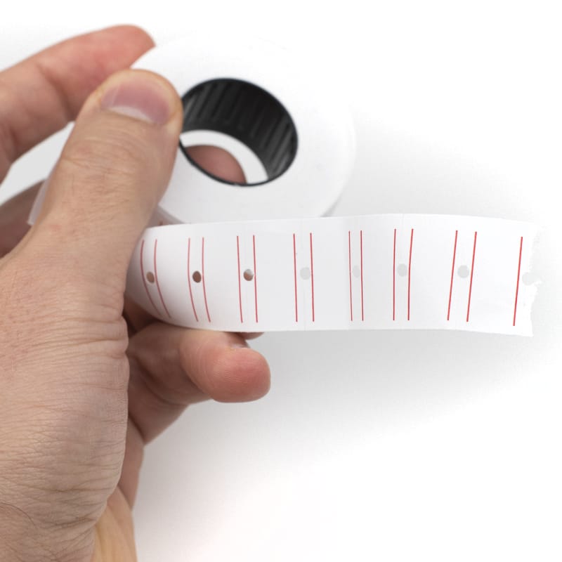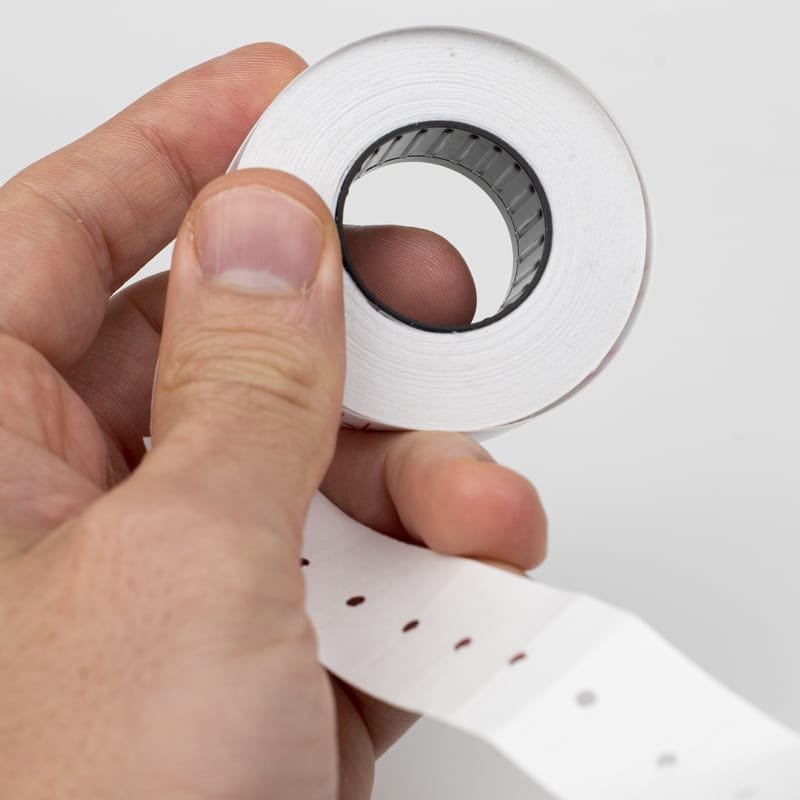 I Rotoli di etichette prezzatrici adesive bianche per prezzatrici ed etichettatrici sono realizzate con carta autoadesiva, ed ogni singola etichetta misura 21x12 mm.