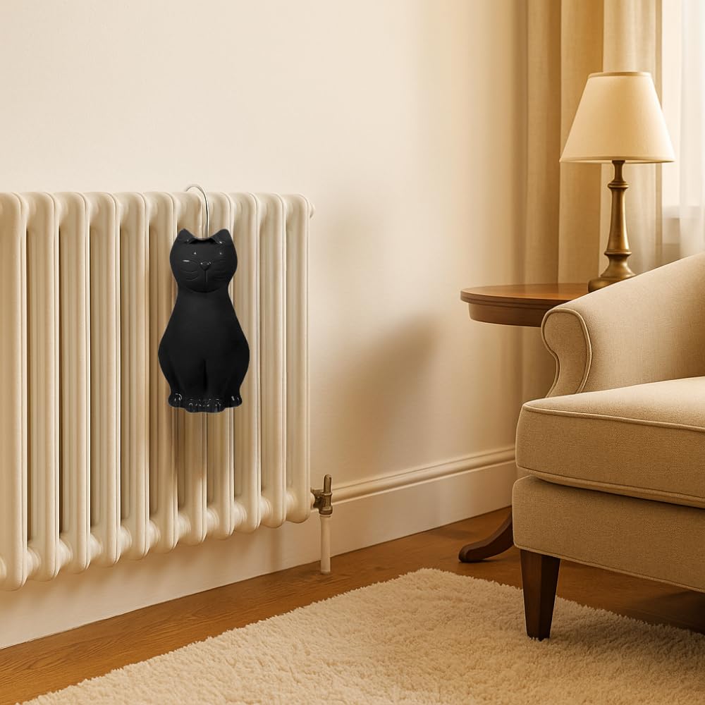 Set 3 Evaporatori d'acqua per termosifoni - mis. 8x4x18cm - Umidificatori termosifone a forma di GATTO e gancio a S - Nero, grigio, bianco