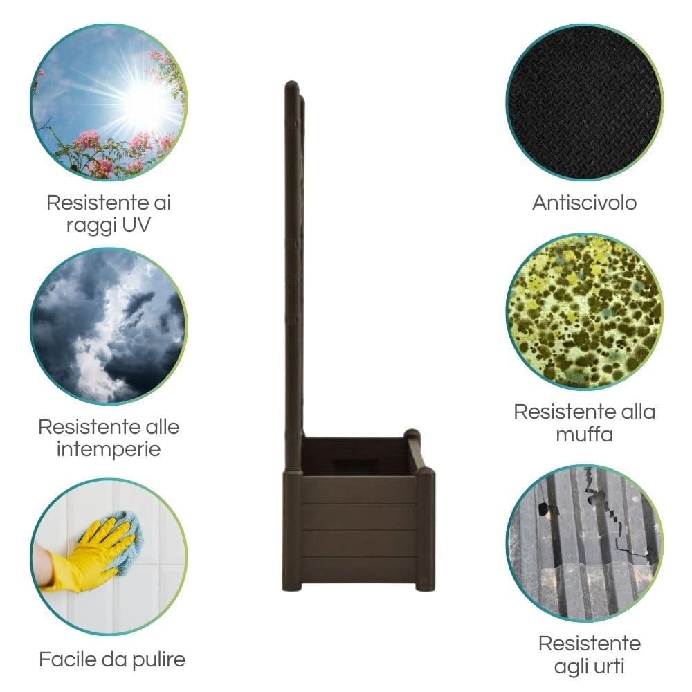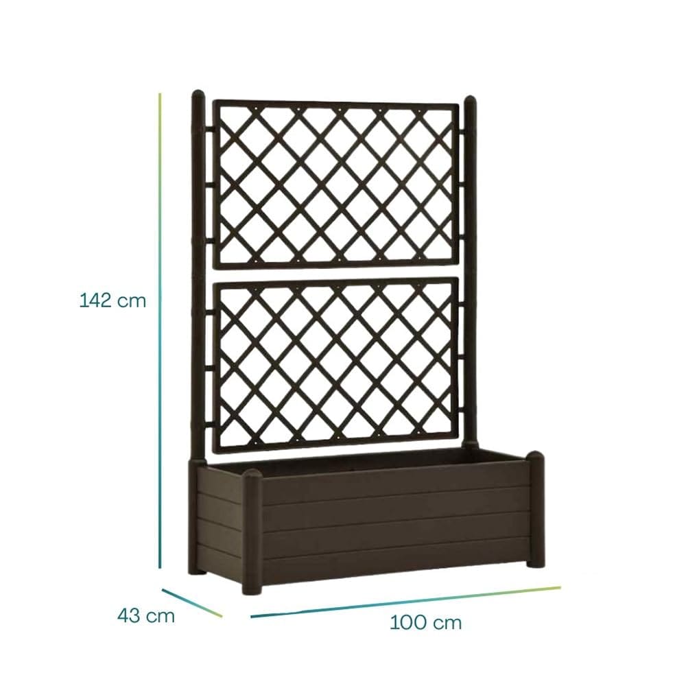 100x43x142 cm, offre ampio spazio per coltivare le tue piante e fiori preferiti. Realizzata in plastica durevole, questa fioriera è progettata per resistere agli urti e agli agenti atmosferici, garantendo una lunga durata nel tempo.