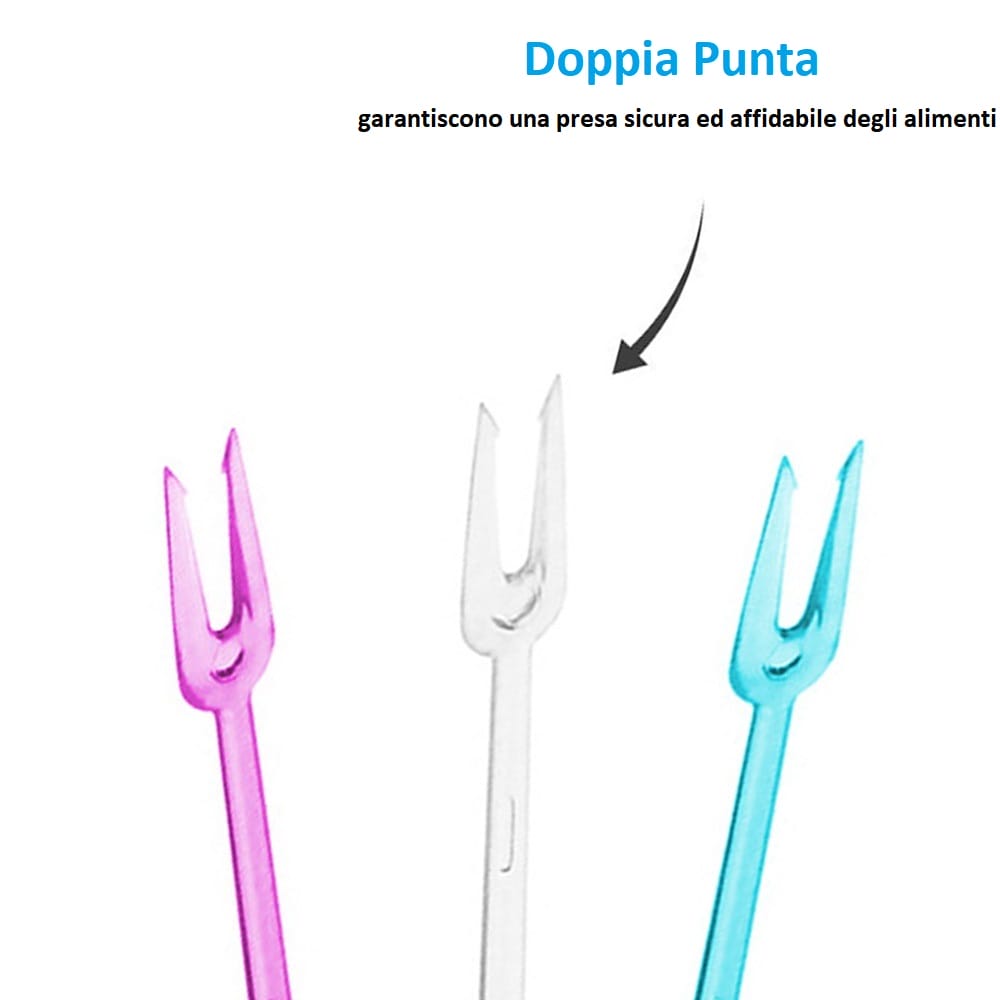 3000 Forchettine a 2 punte Riutilizzabili colorate, lunghezza 8,5 cm - Forchettina in plastica da Aperitivo, Frutta, Finger Food e Feste