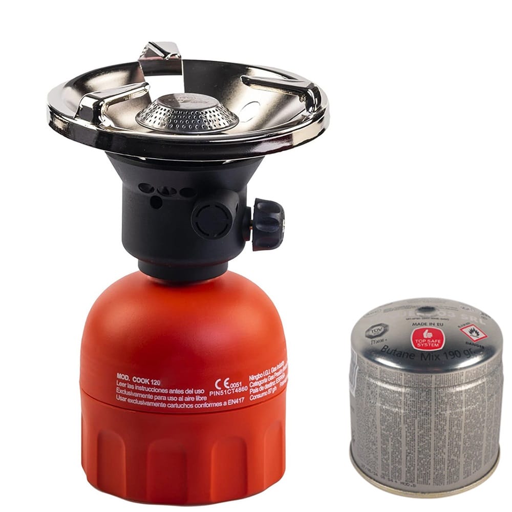 Un fornellino da campeggio a gas con cartuccia da 190 gr inclusa, perfetto per le tue avventure all'aria aperta! Ideale per preparare rapidamente pasti deliziosi durante campeggi, picnic o eventi all'aperto.