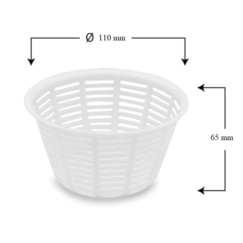 10 Fuscelle per Formaggio rotonde K05 - mis. 110x65mm e Capacità 500 gr - Contenitori Bianchi in polietilene ad alta densità per formaggi freschi
