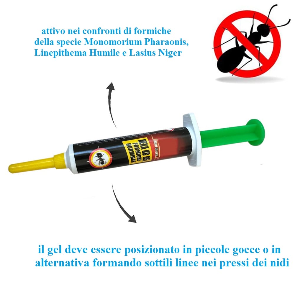 Gel per formiche professionale in siringa da 10 gr. pronta all'uso - Attrae le formiche che ingerendo l'esca la trasportano nel nido, contaminando e distruggendo la colonia