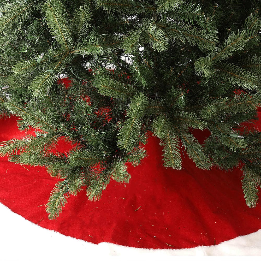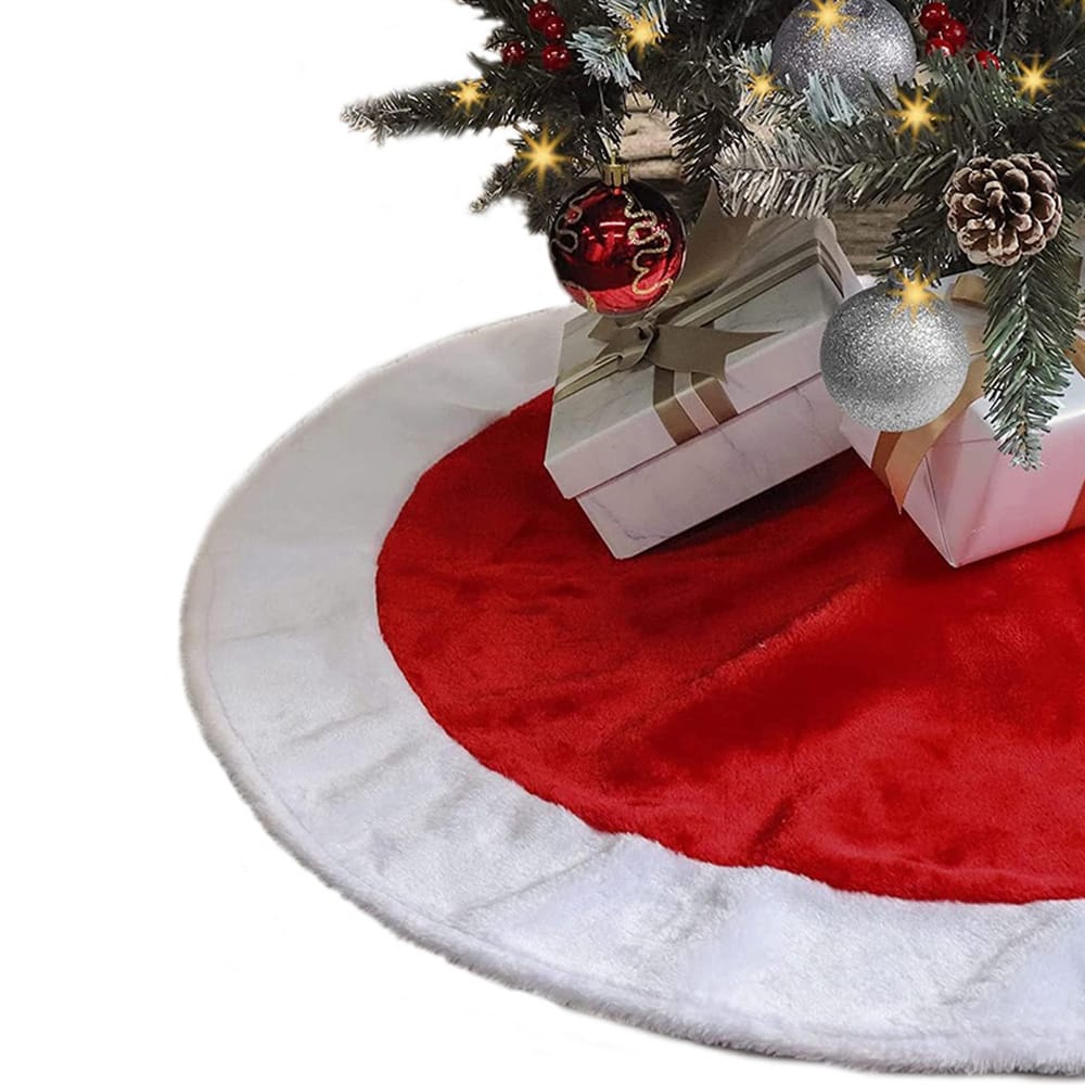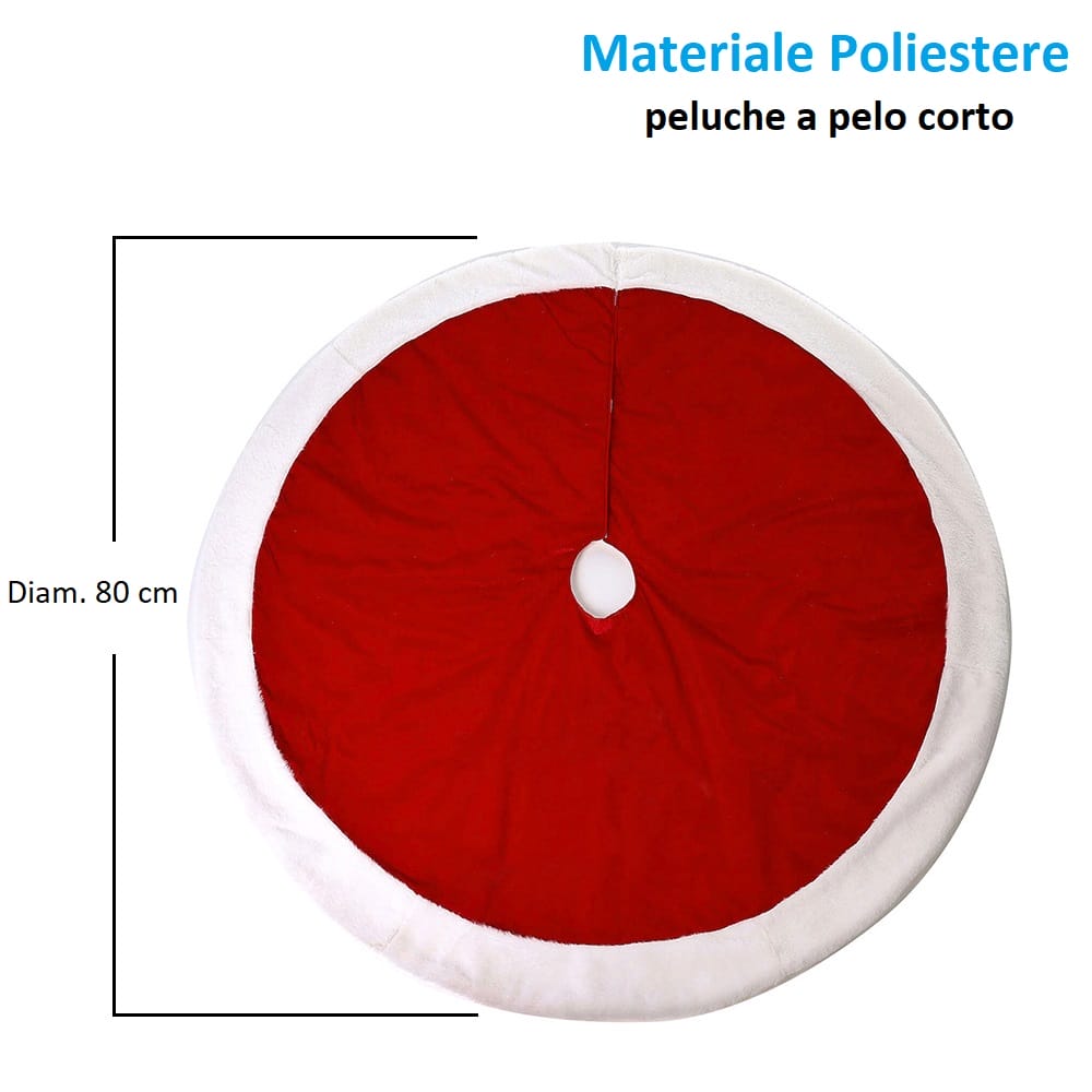 Gonna copri base per albero di natale in peluche a pelo corto con Diametro 80 cm - Tappeto copripiedi per albero di natale Rosso e Bianco