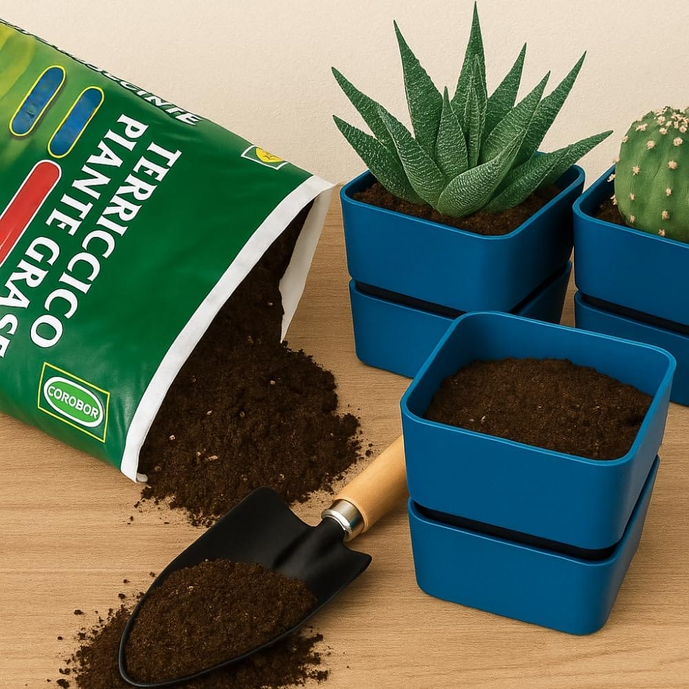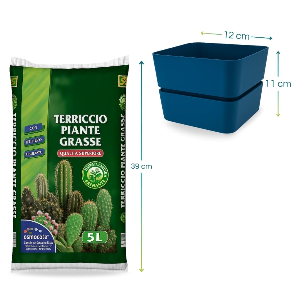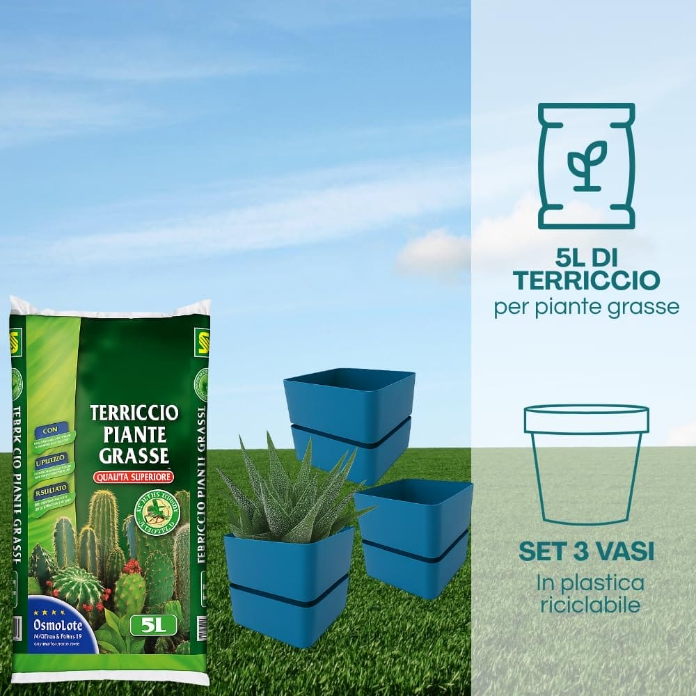 KIT terriccio per piante grasse con SET da 3 vasi