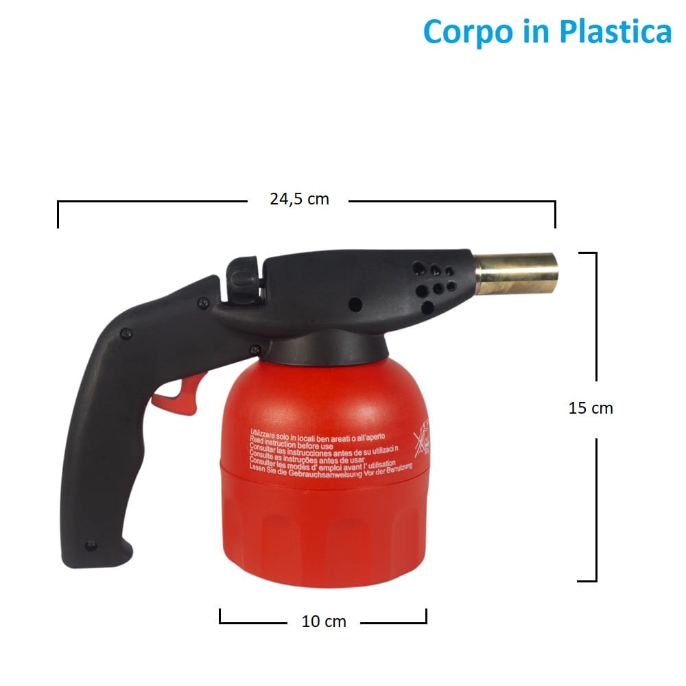 Bruciatore a gas a con cartuccia da 190 gr - Lampada con accensione piezo e regolatore di fiamma ideale per brasatura di rame e stagno