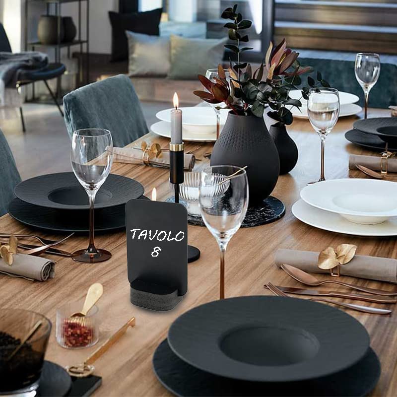 6 Lavagne segnaposto in Forex Nero mis. 10x15 cm con scrittura su doppio lato con gesso o pennarello per bar e ristoranti