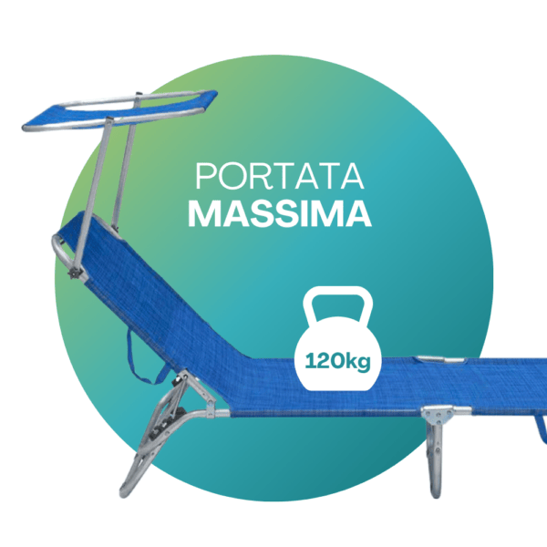 Lettino prendisole pieghevole con tetto parasole - Misura 180x55x90 cm e portata massima 120 Kg - Sdraio da giardino con struttura in metallo e tessuto textilene Blu