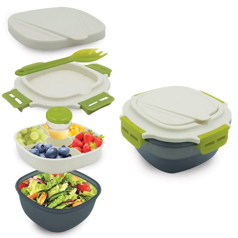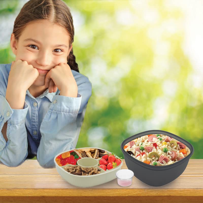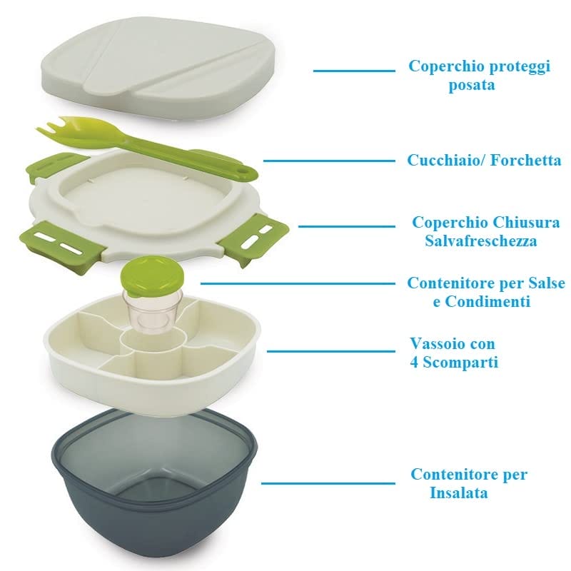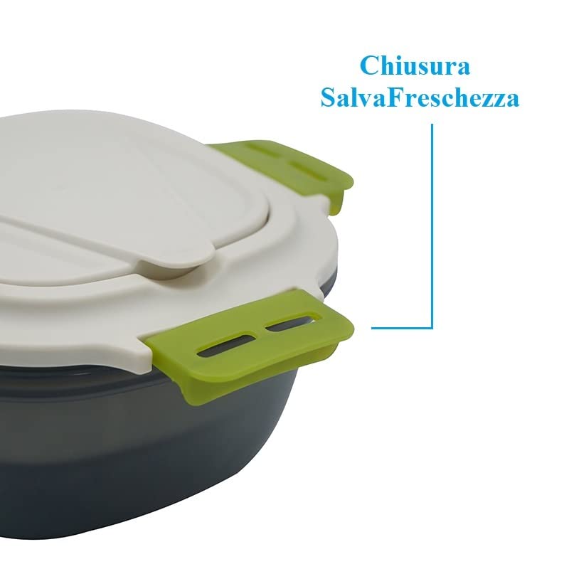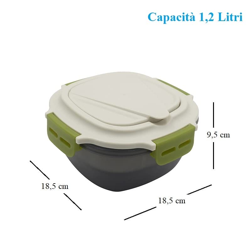 LunchBox Portapranzo per microonde con capacità 1,2L - Contenitore Alimenti da 5 pezzi: Forchetta, barattolo Condimenti, Coperchio, Vassoio con Separatori e Contenitore - Chiusura Ermetica