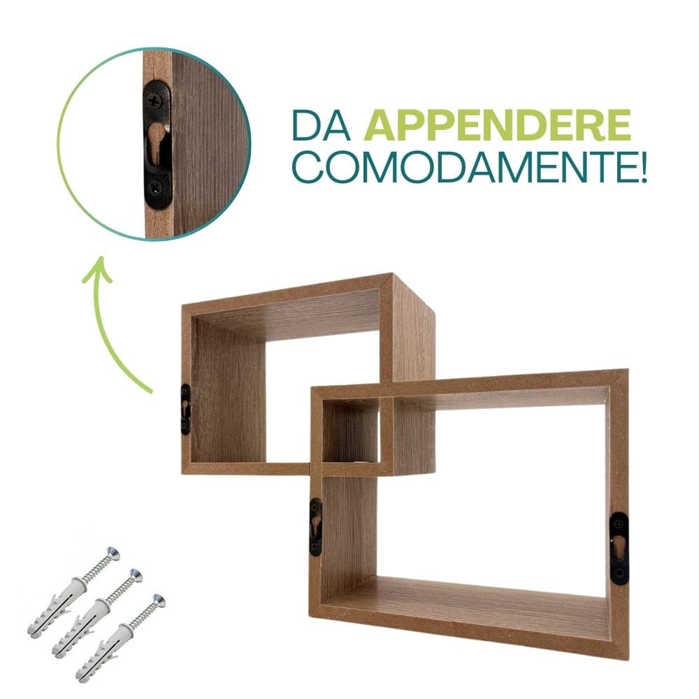 SET AD INCASTRO - composto da una mensola quadrata e una rettangolare che si intersecano creando 3 ripiani d'appoggio offrendo flessibilità nell'organizzazione degli spazi. Con le sue dimensioni compatte, questa mensola offre uno spazio espositivo ideale per gli oggetti più preziosi della tua casa.