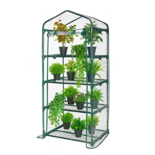 Serra per piante a 4 ripiani - Misura 69x49x155 cm - Mini Serra da balcone con struttura in acciaio e telo in PVC per proteggere piante e fiori